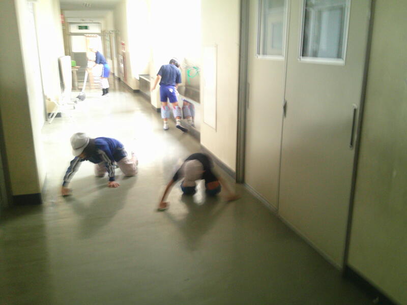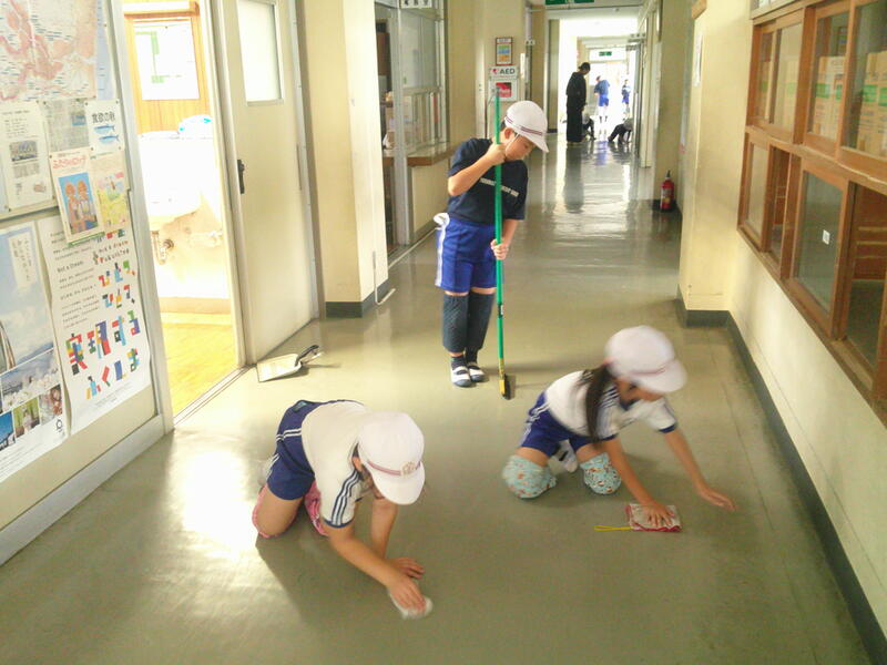 以前に比べて児童数が減ってきて、ひとつの場所を担当する人数が少なくなりました。一人一人がフル稼働して、校舎内をきれいにしています。