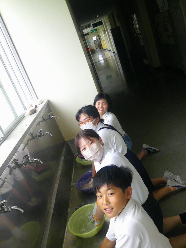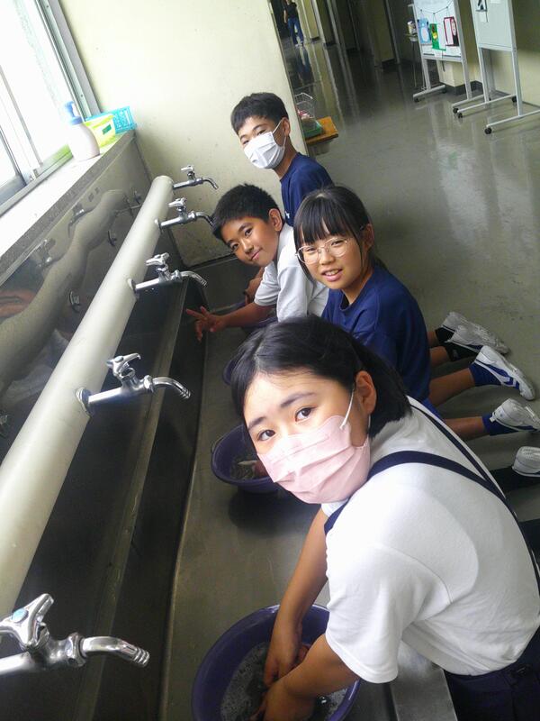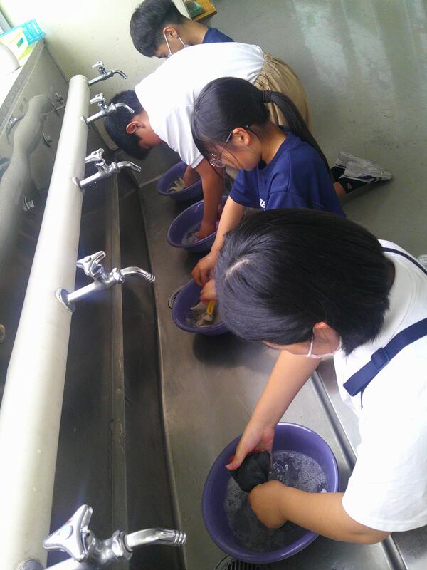 そういえば、6年生は午前中に校庭で草むしりや清掃活動をしていました。その時使った軍手を洗っているんですね。