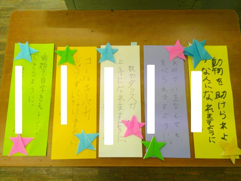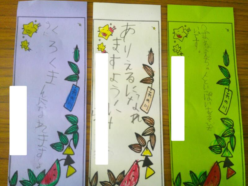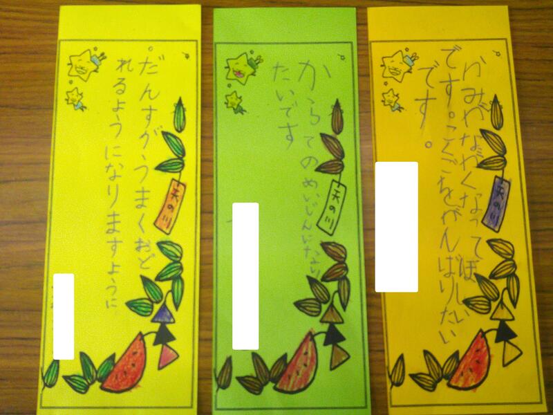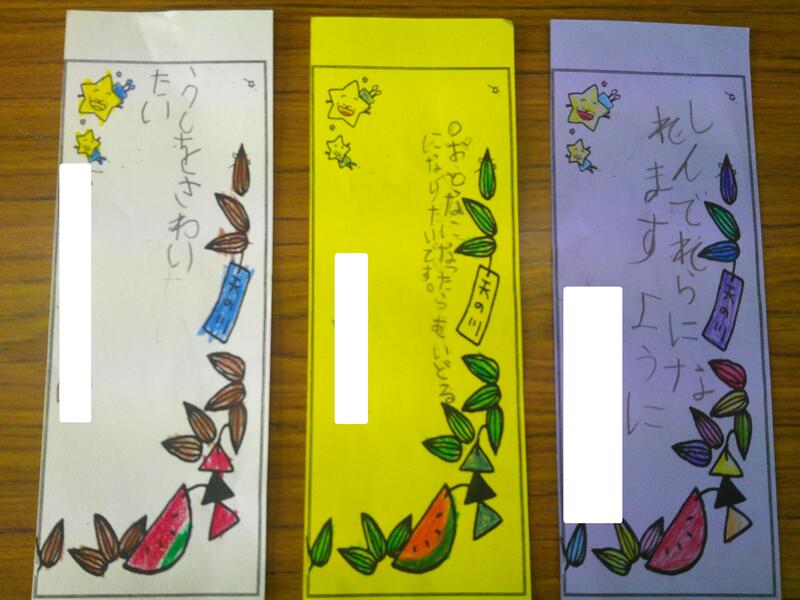 それぞれの学級で、七夕の願いごとを書いていました。