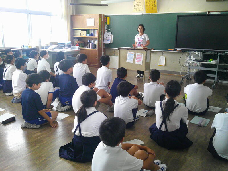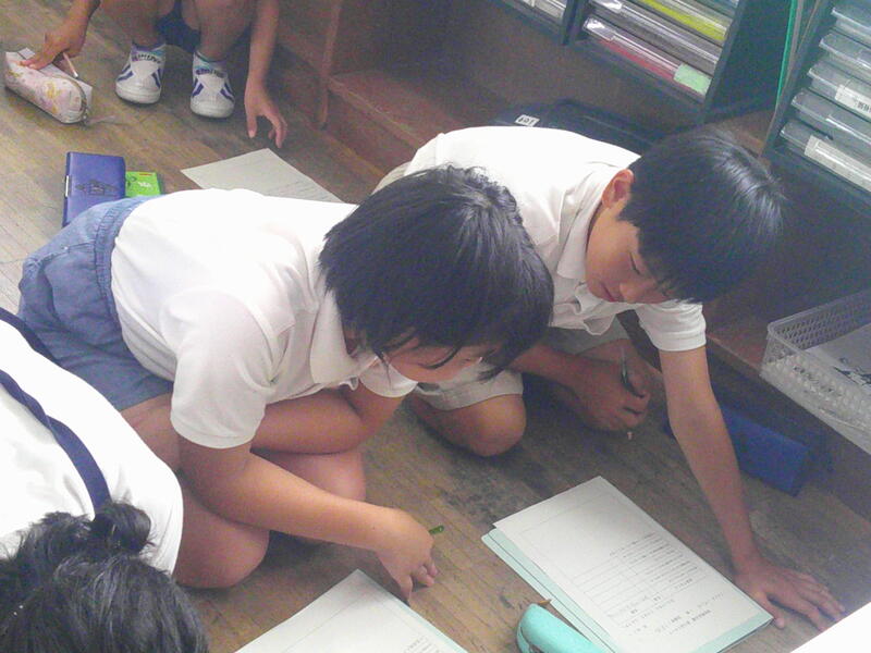 一方、こちらは6年生。登校班の班長会議の様子です。ピシッとして、6年間での子ども達の成長を実感します。写真もモヤモヤしていますが、あまりの暑さに、急遽エアコンのある普通教室で行ったため、床座り、床机ですみません。