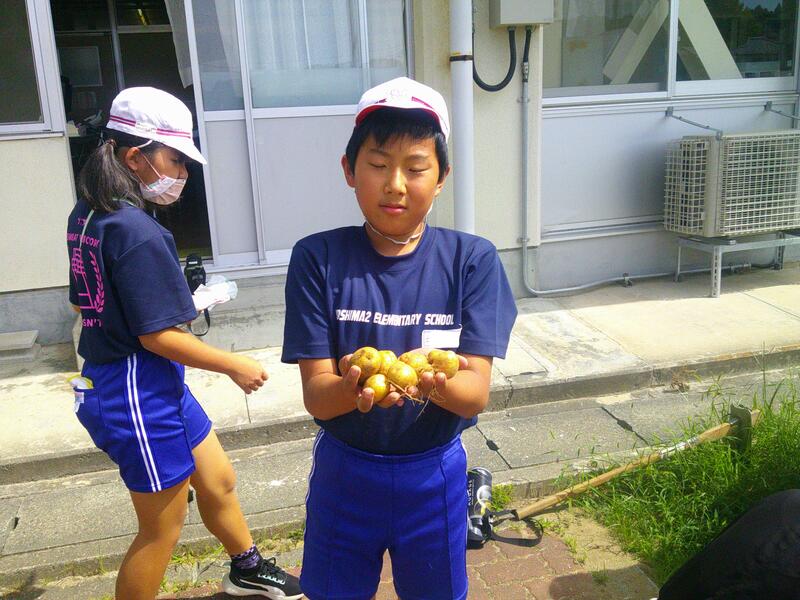 しっかり者の6年生。ですが「(理科の実験で葉っぱを使うために育てていた)ジャガイモを掘りおこすよ~」と先生に言われた途端「わ~い!」とみんなで仲良くジャガイモ掘り。