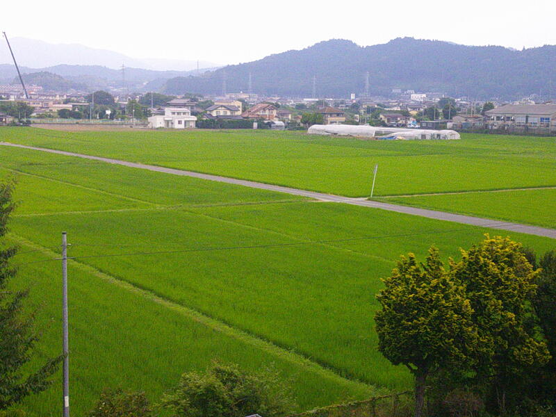 学校の周りの田んぼは、一面の緑色。