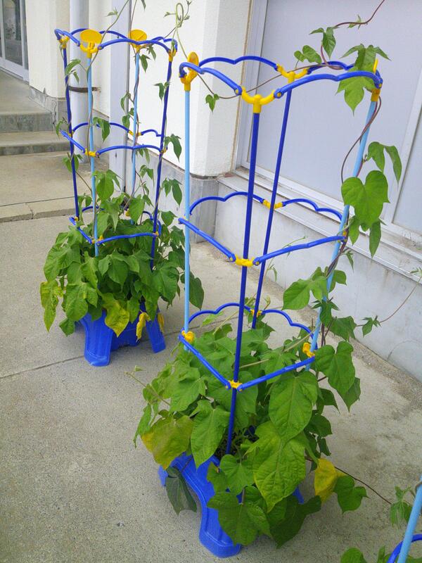 1年生の育てている朝顔は、「つる」がぐんぐん伸びています。