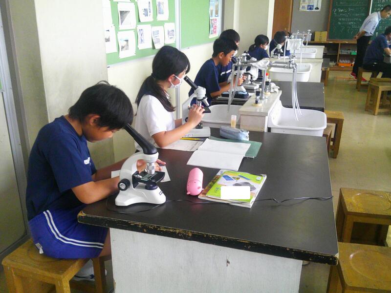 ③6年生が一人一台の顕微鏡で学習していました。私の頃は班で一台でした。タブレットも一人一台。子ども達は、幸せですね。
