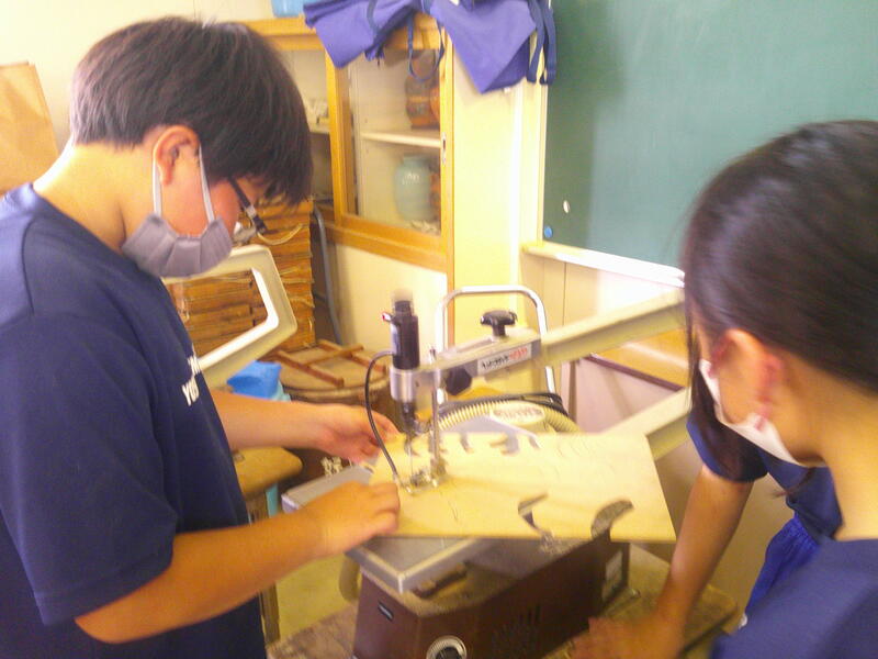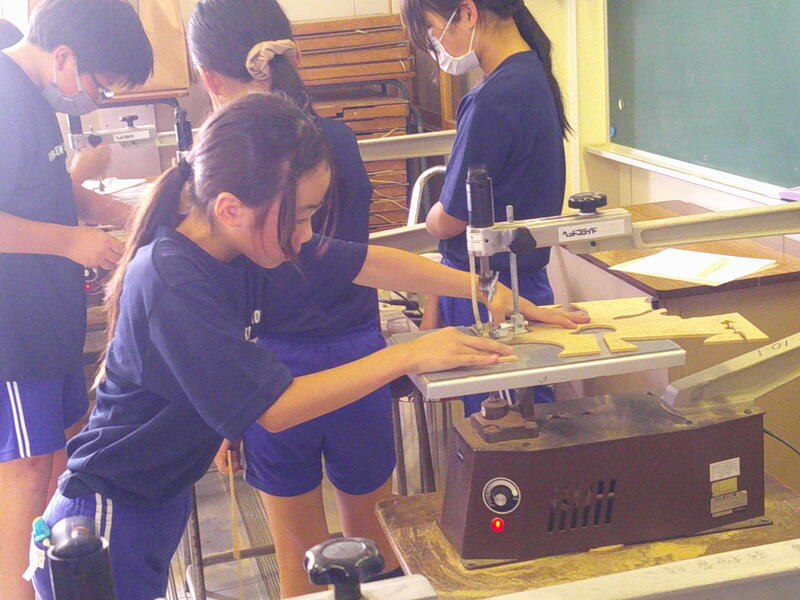 ①特別教室にはまだエアコンがないので、先生が水分補給や休憩を呼びかけながら、授業を進めていました。糸のこぎりや家庭科の実習など、どうしても教室では活動が難しいものもあるのです。これから各学校の特別教室にも順にエアコンが入っていきます。よかったです!