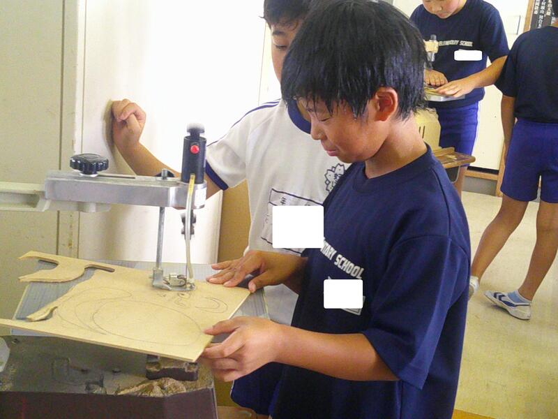 糸のこぎりの学習をしているのは5年生。暑そうですね。次の時間はプール学習で、とても気持ちよさそうでした!