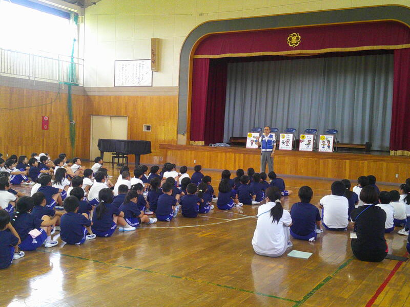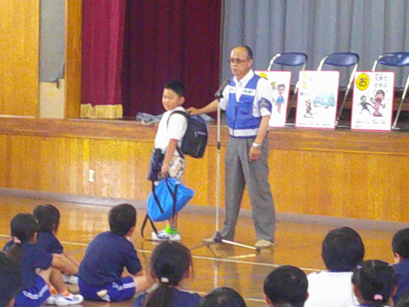 急に、4・5・6年生の一番後ろにいる児童に、「『助けて~』と大声で叫んでみてください」という指示がありました。「大きな声を出す」ことは、実際には怖くて難しい場合もあります。そんな時のための防犯ブザーです。毎日身につけていますか?音はきちんとなりますか?今日はぜひ確認をお願いします。