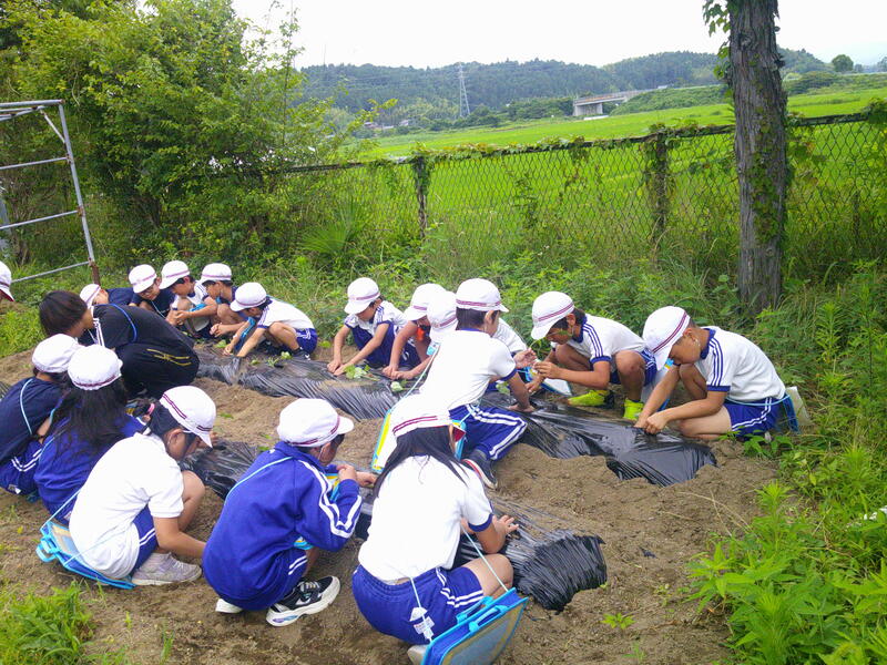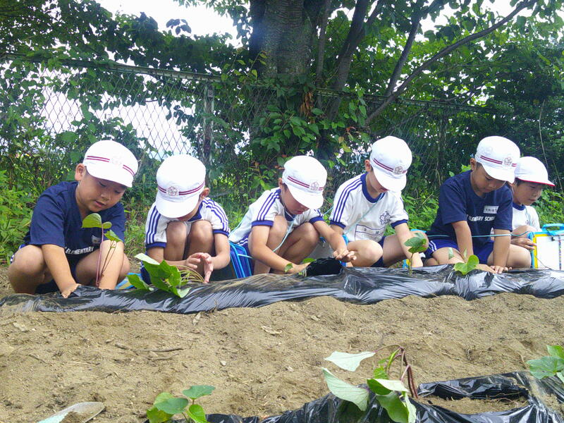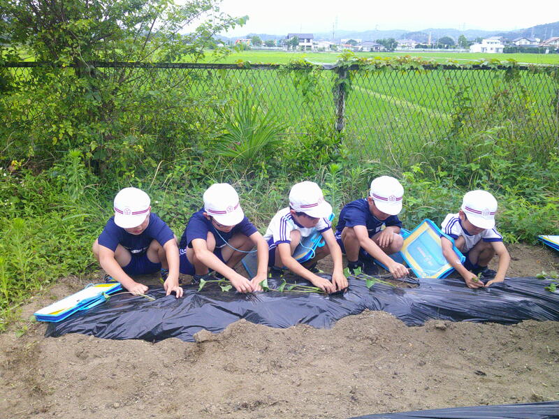 2年生は、サツマイモを植えていました。「マルチ踏んじゃダメだよ~」という2年生。『マルチ』知ってるんだね、すごい!