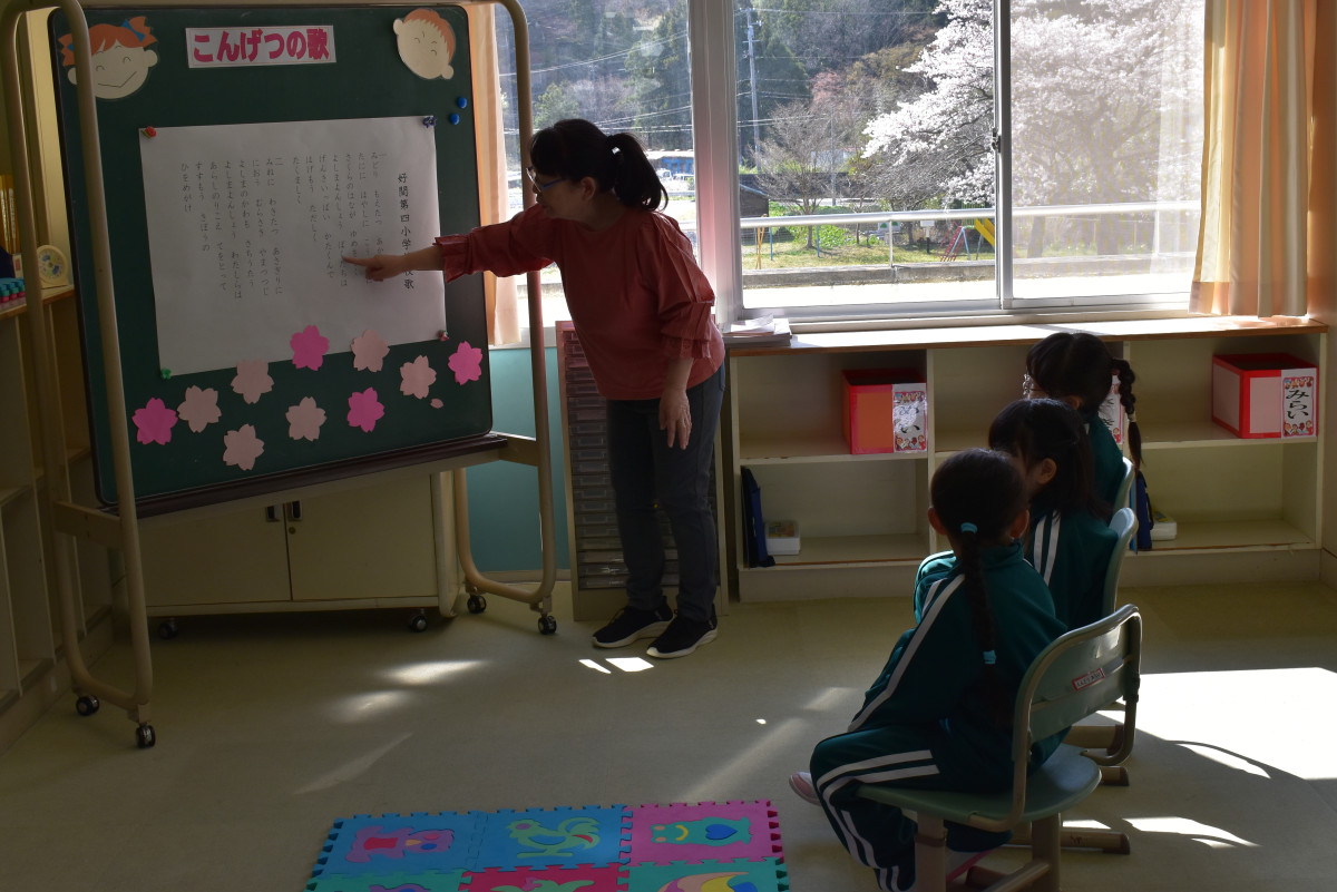この日の3時間目の授業です。5・6年生は算数科の学習です。1年生は国語科で漢字の読み取り学習です。