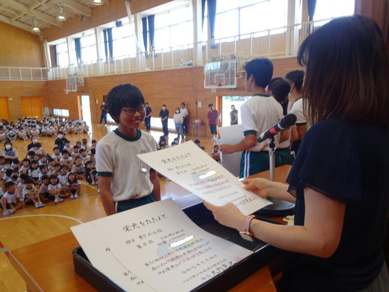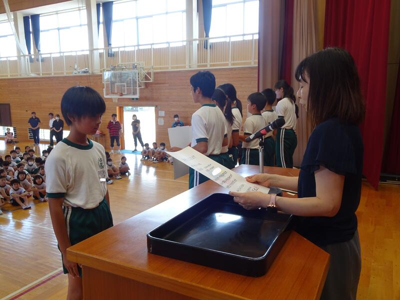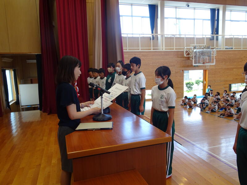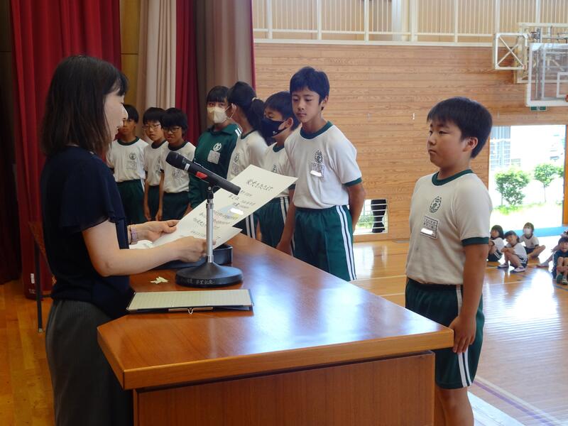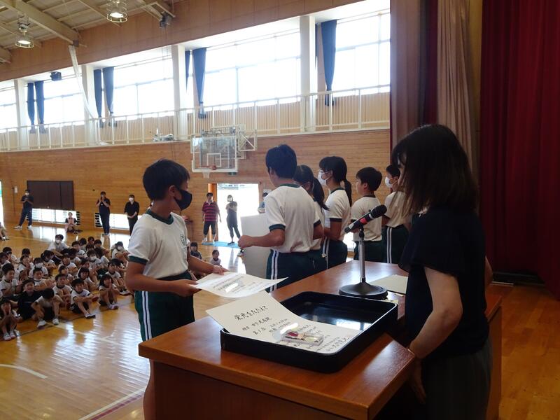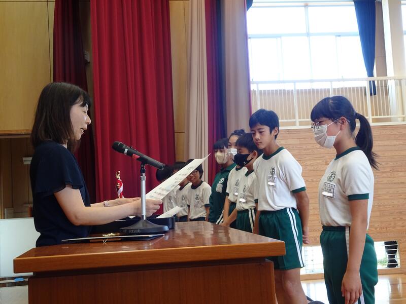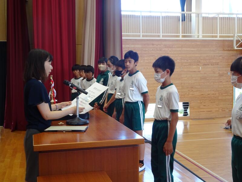 2023年7月3日 17時10分今日は、全校集会で先日の陸上競技大会と歯の衛生ポスターの入賞者に賞状を渡しました。すばらしい頑張りに拍手を送りたいと思います。