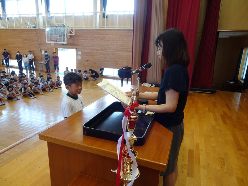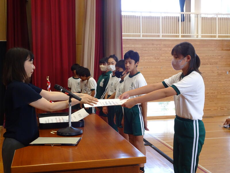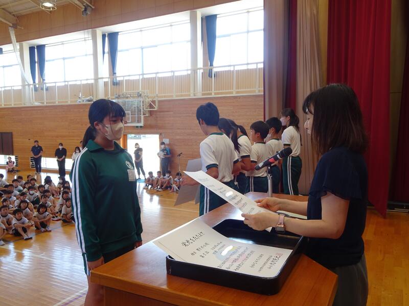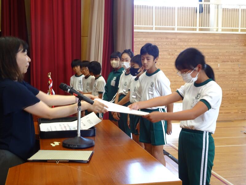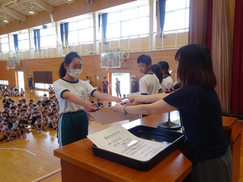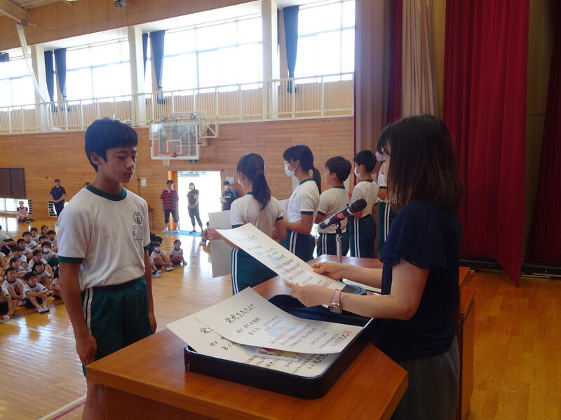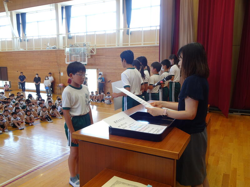 2023年7月3日 17時10分今日は、全校集会で先日の陸上競技大会と歯の衛生ポスターの入賞者に賞状を渡しました。すばらしい頑張りに拍手を送りたいと思います。
