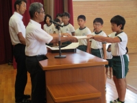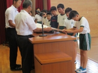 2017年7月10日 12時29分 今日の全校集会では、先日行われた陸上競技大会の表彰式がありました。