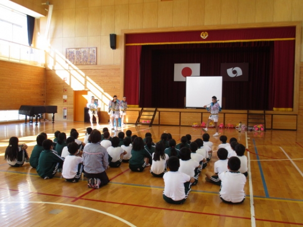 2017年11月24日 14時52分 3年生では、地域の伝統芸能を調べる学習として、いわき市に昔から伝わる花笠踊りの学習をしました。