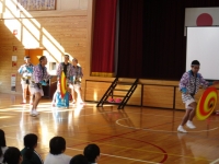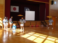 四倉町には、四倉の保存会と大浦の保存会があります。今日は、大浦の保存会の皆様に起こしいただき、実際に踊りを見せていただき、伝統芸能について学びました。