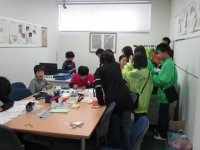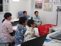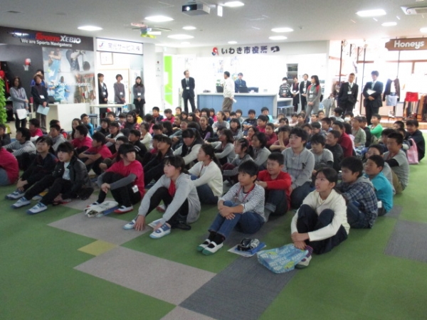 はじめの会で、いわき市長役となった村越さんのあいさつで、「今日一日、社会人となってがんばりましょう。」という言葉が印象的でした。その後、各部署の本物の社員の方の説明を受け、班ごとに打合せを行って活動をしました。