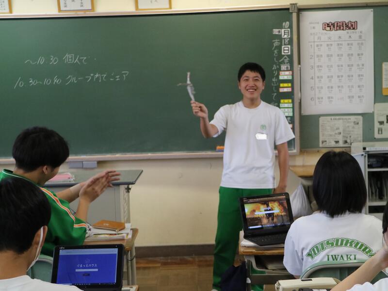 考えた後は、各グループの代表者達から発表してもらいました。いろんな工夫ができていましたね。