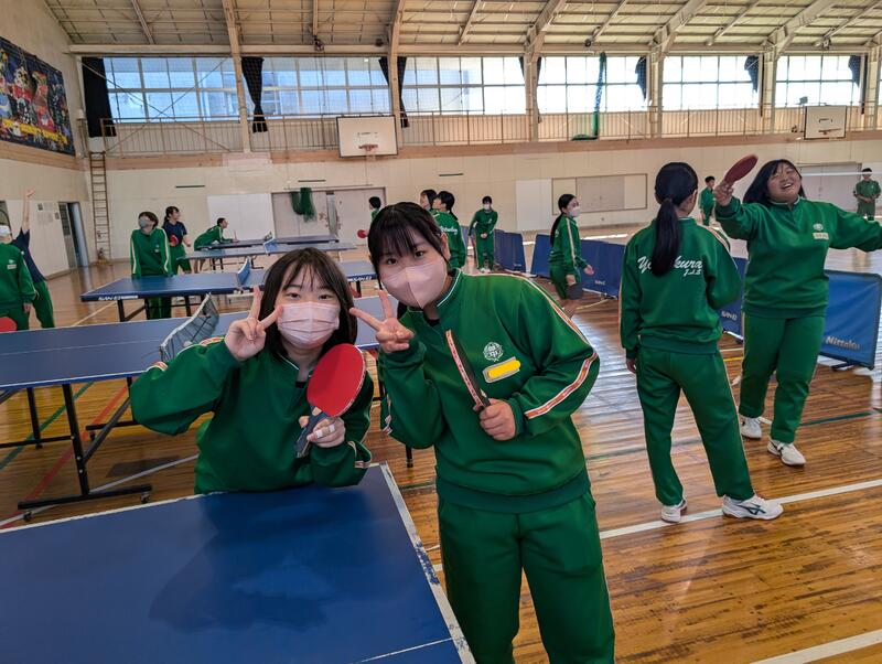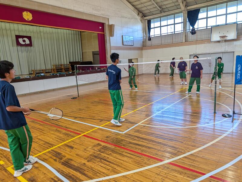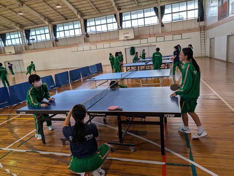 2年1組の体育の授業にお邪魔しました。バドミントンと卓球に分かれ、男女時間交代で楽しんでいました。みんな、なかなか上手ですよ。