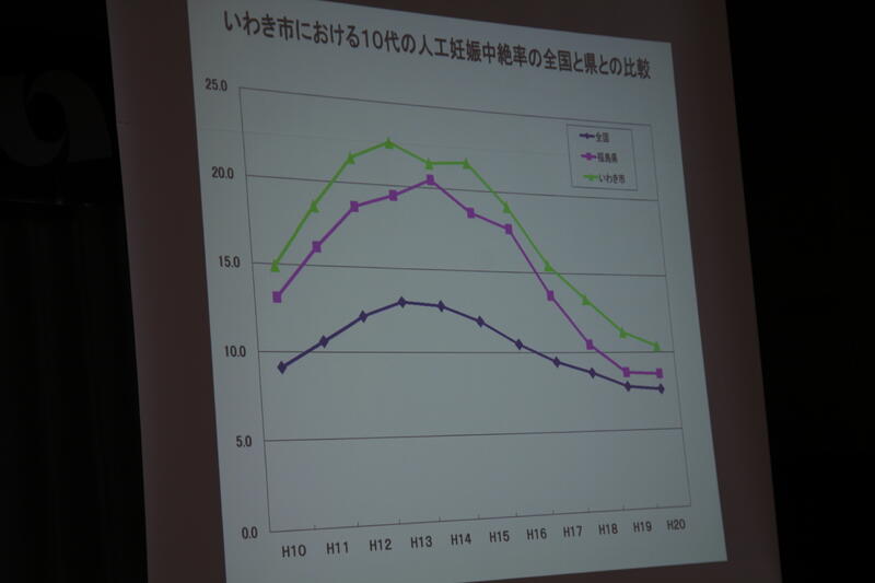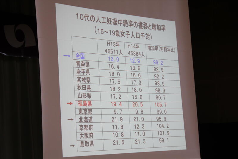 校長先生からの講師紹介の後、産婦人科医の先生からの講話。生徒達は、時折メモをとりながら真剣な表情で聞いていました。