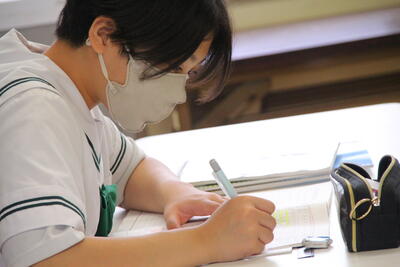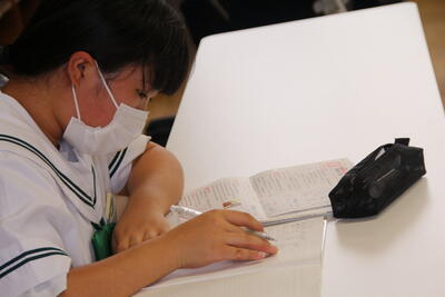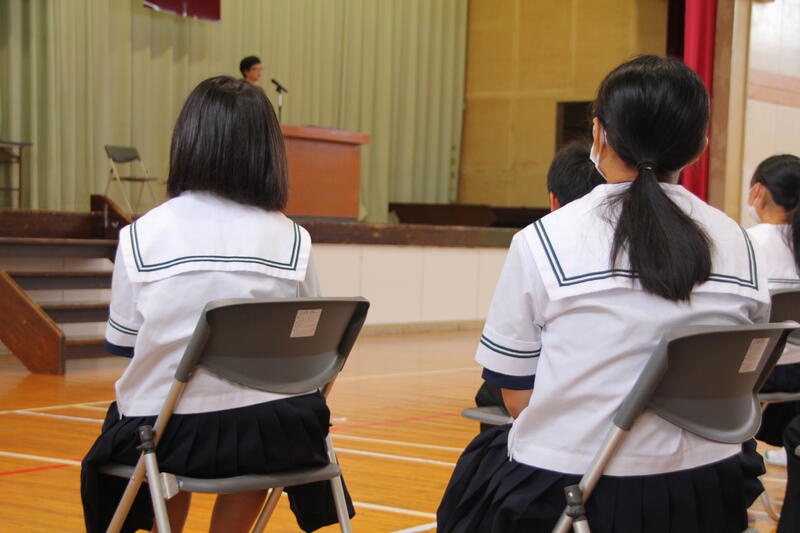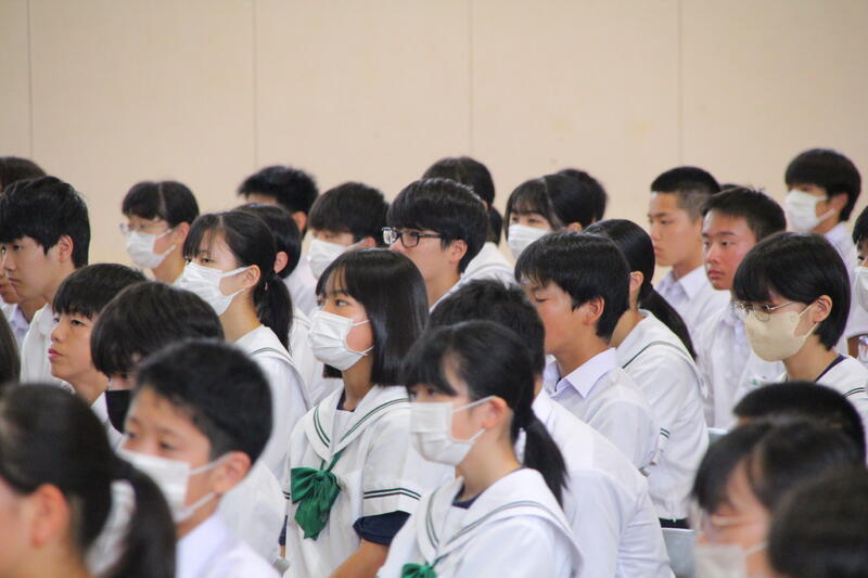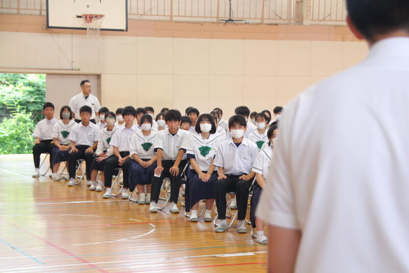 少し余談です。本校生徒を見ていると、感心させられることがいくつもあります。その1つに、話を聞く態度があります。本校生徒は、話をする人にいつも体を向けて話を聞いています。先輩の姿を見て、後輩たちもみんなこういったことが習慣付いています。素晴らしいことです。