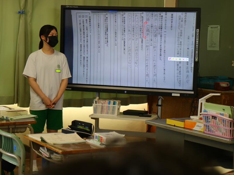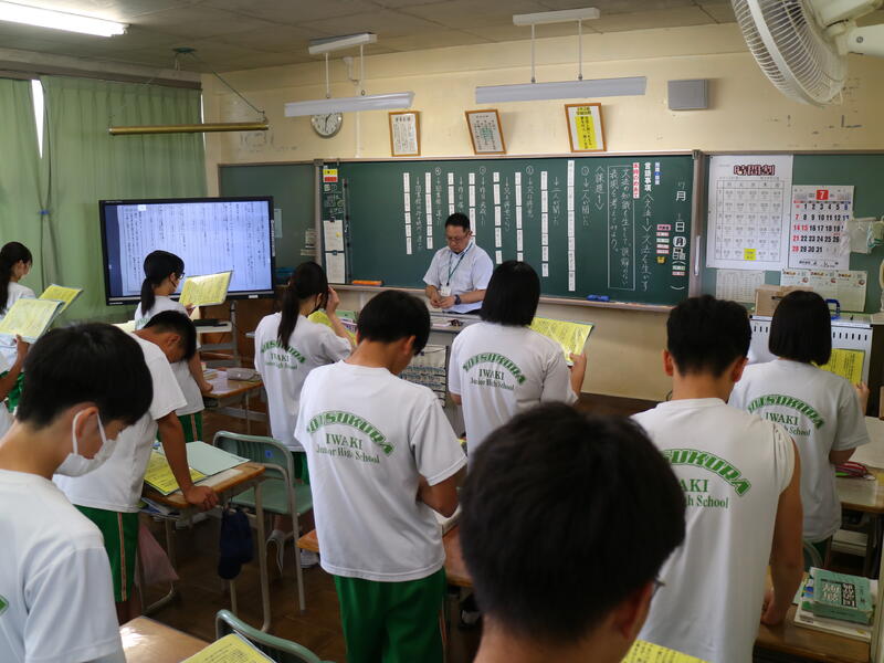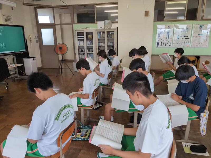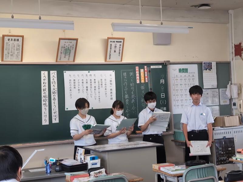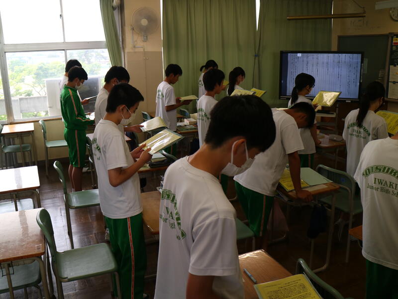授業の初めには、全員で「早口言葉」や「おくの細道」を音読しました。発表への心構え作りも兼ねています。