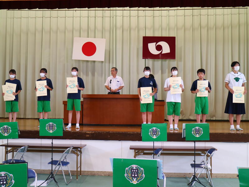なお、壮行会に先立ち、市中体連の表彰も行われました。大変多くの生徒が賞状をもらいました。誇らしいことです。