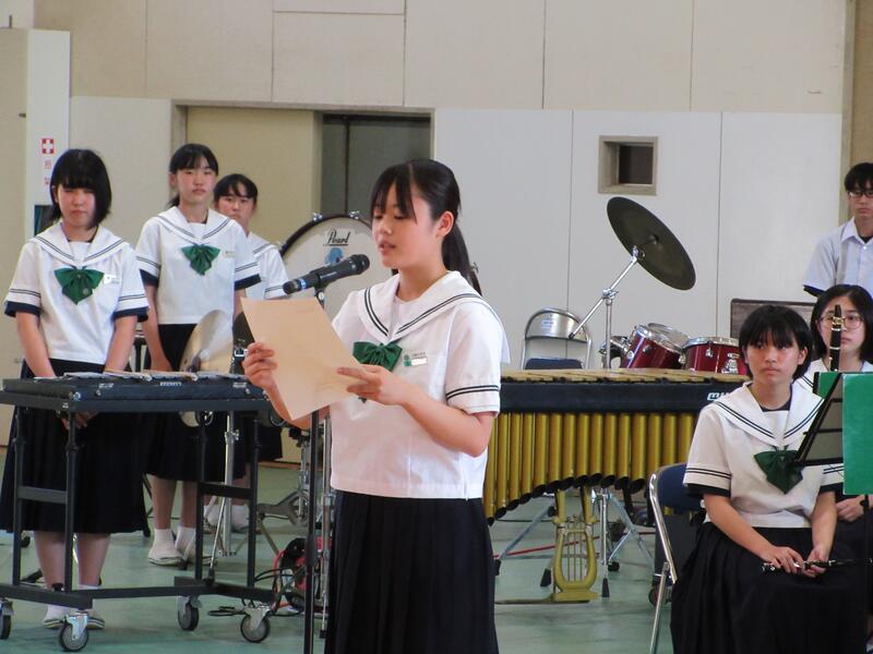 吹奏楽部長からのお礼の言葉。大会に向けた強い意気込みが話されました。