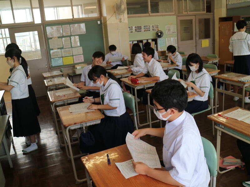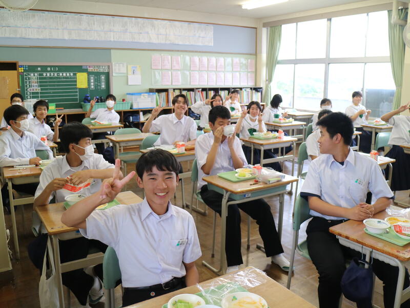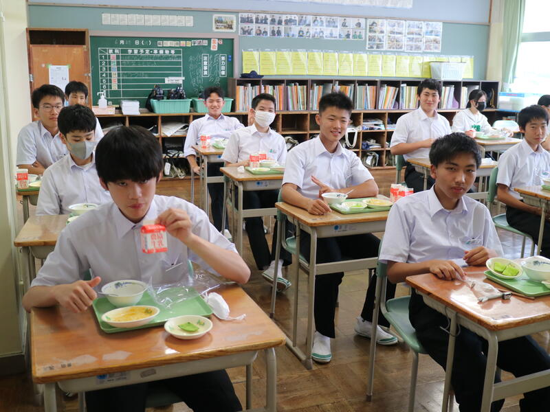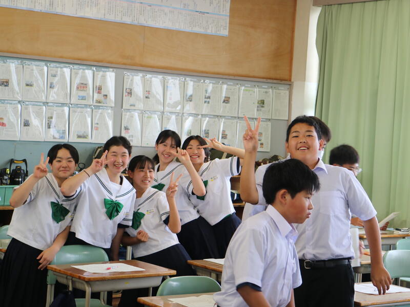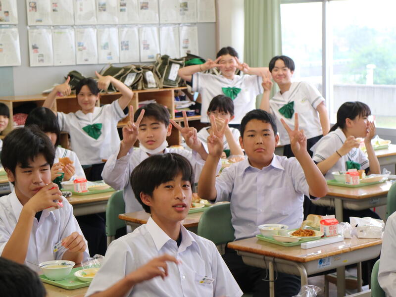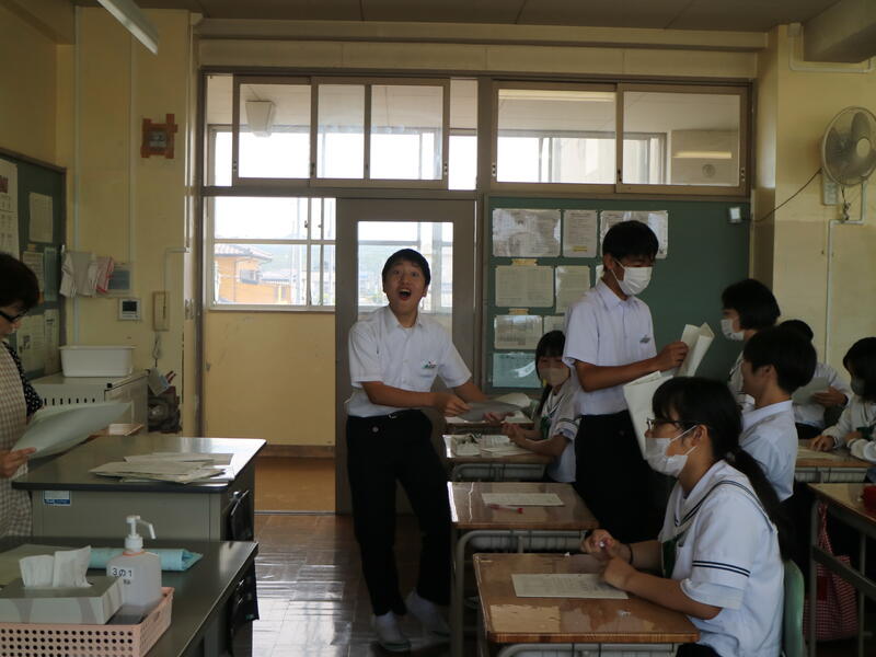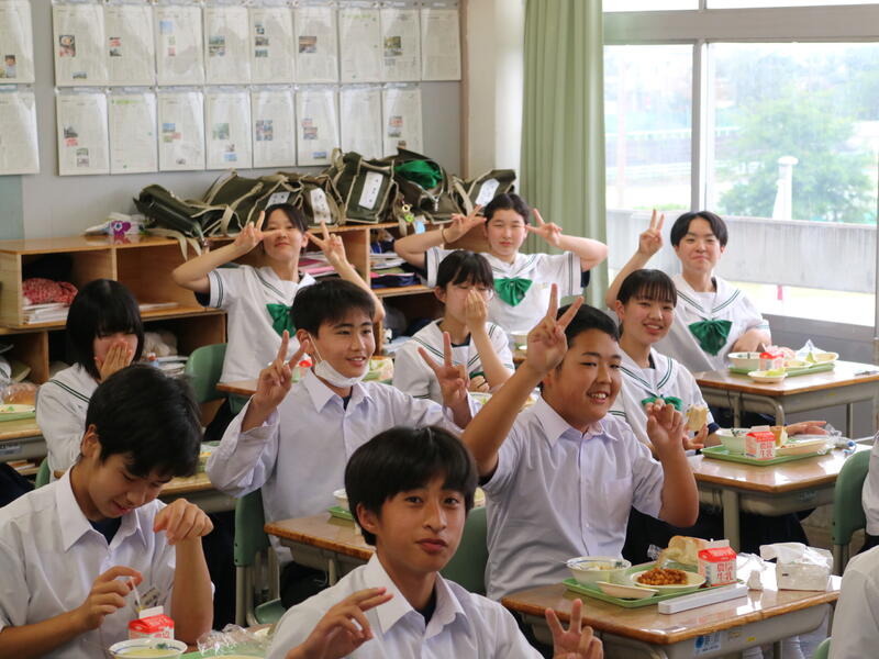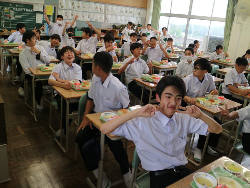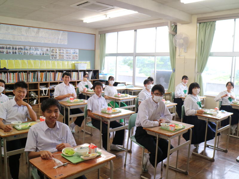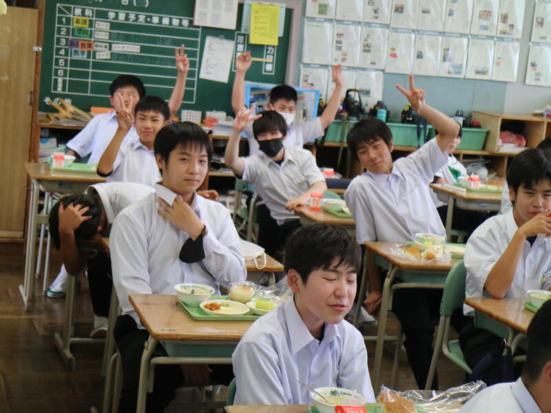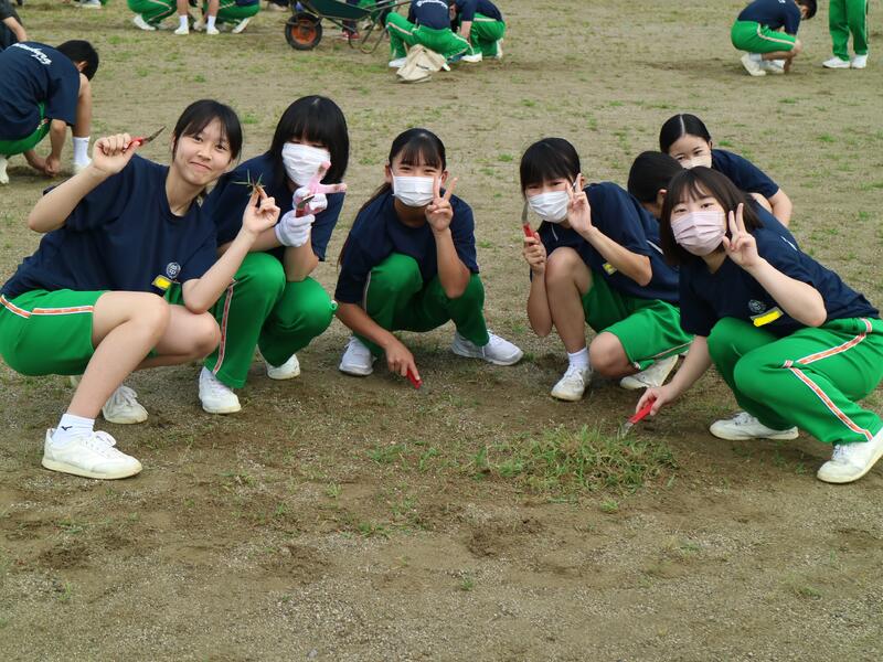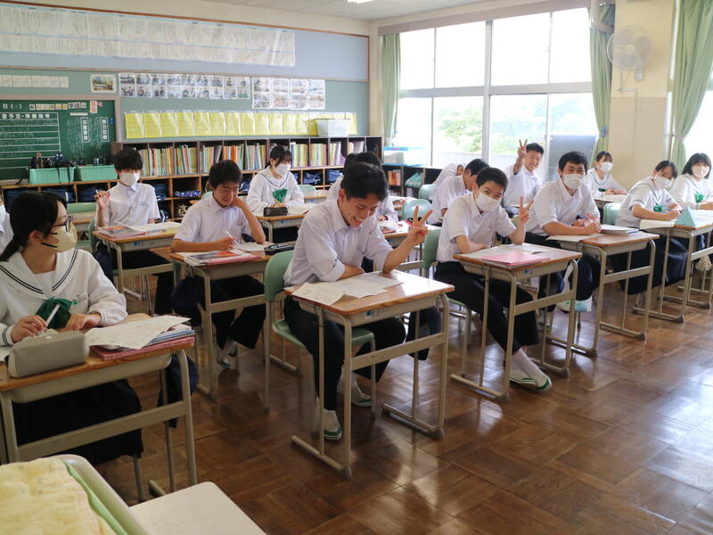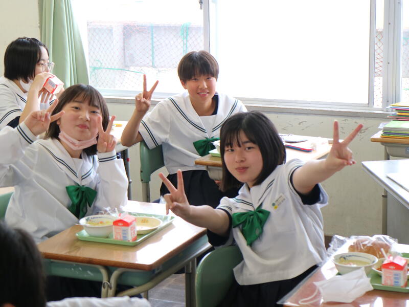 校内を回ると、笑顔の生徒たちが声をかけてくれる学校です。仲良しショットを1つ、ぜひホームページに、とリクエストがありました。外は雨模様ですが、本校生徒の表情はいつも晴れやかです。