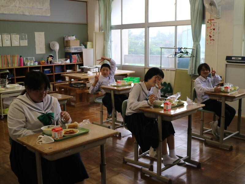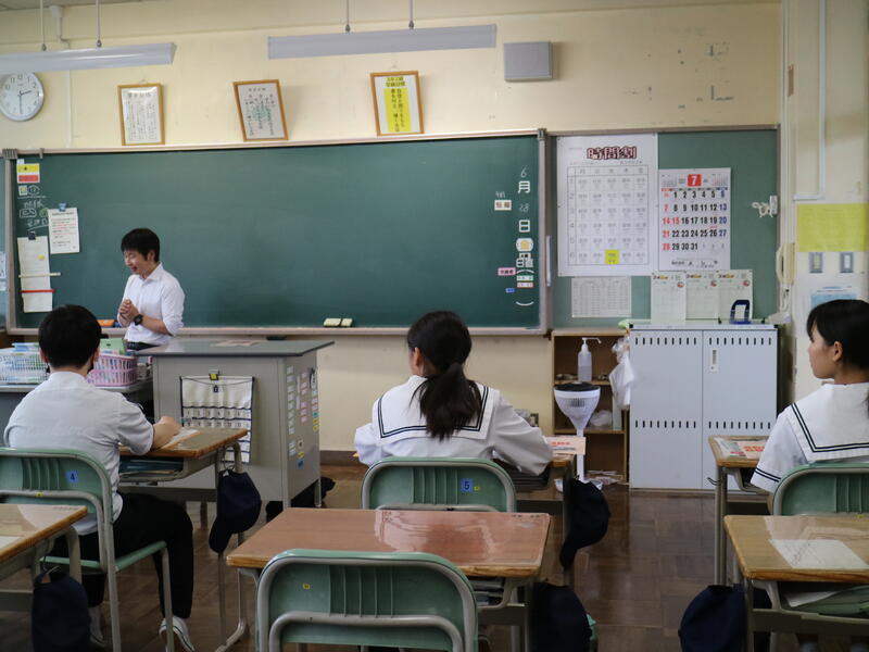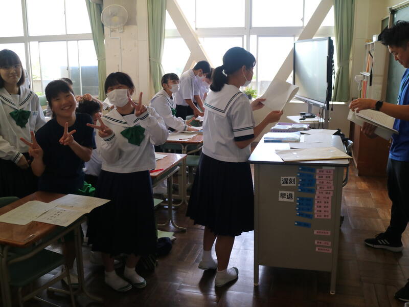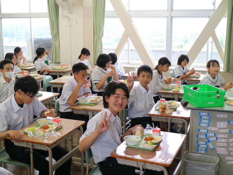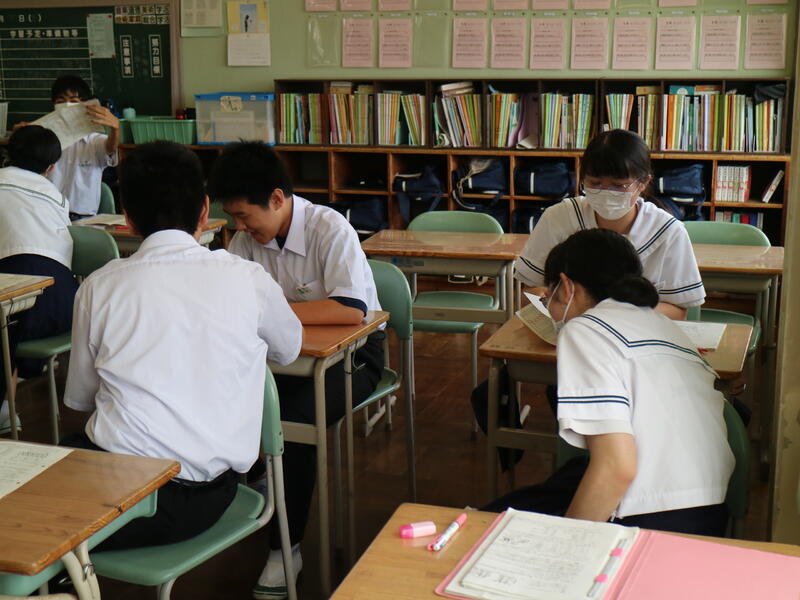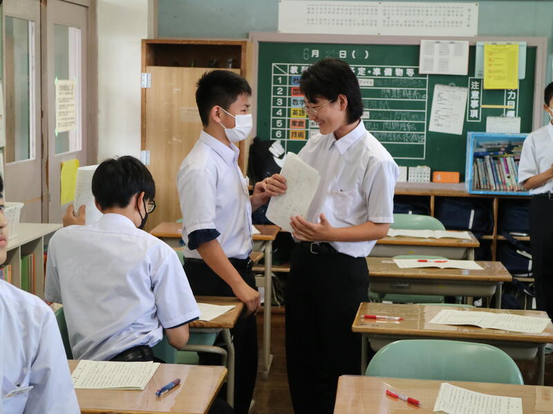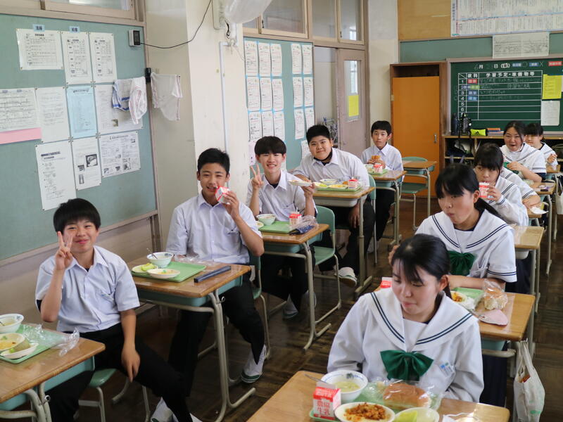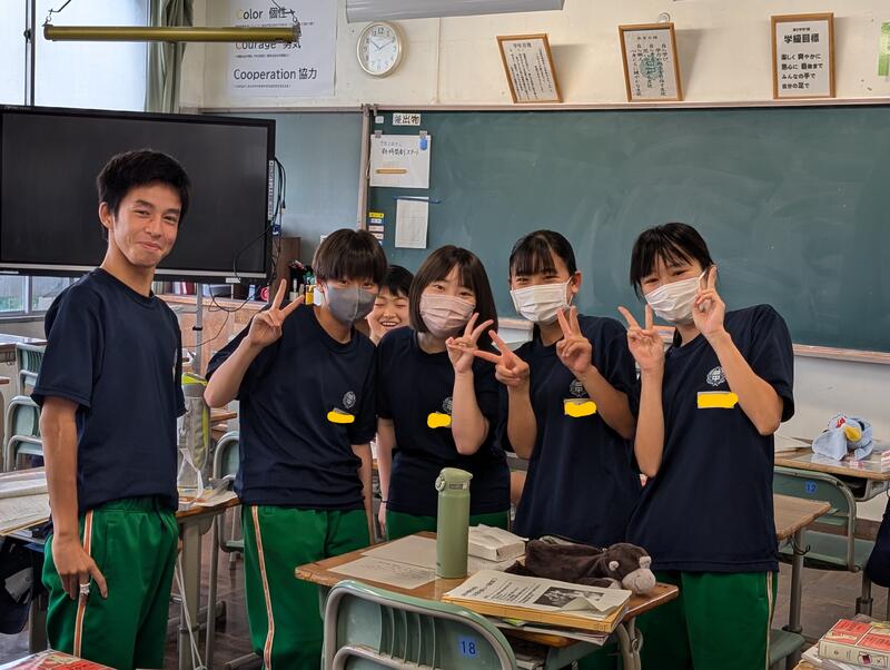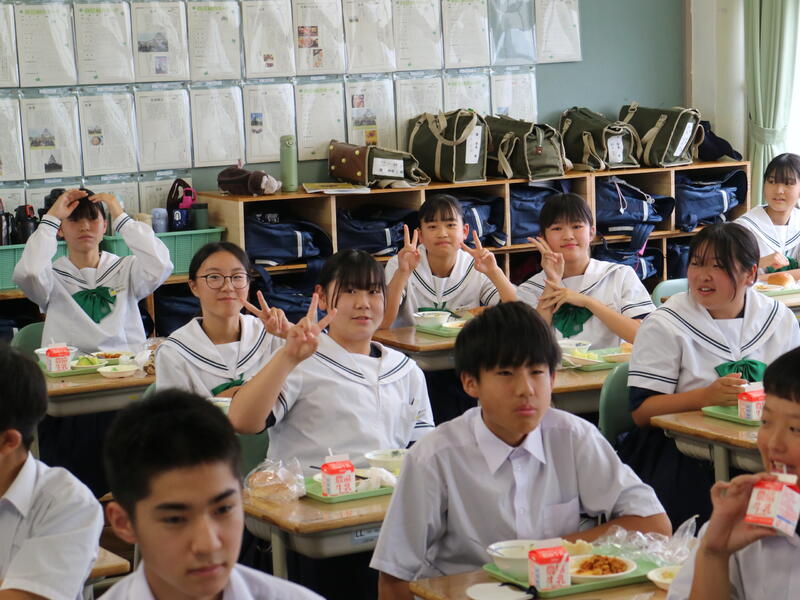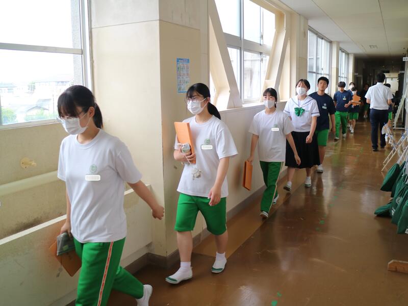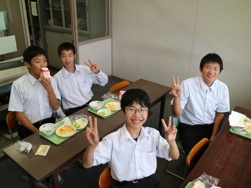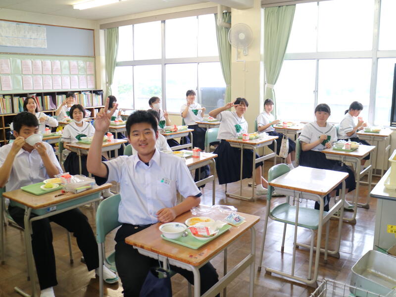 校内を回ると、笑顔の生徒たちが声をかけてくれる学校です。仲良しショットを1つ、ぜひホームページに、とリクエストがありました。外は雨模様ですが、本校生徒の表情はいつも晴れやかです。