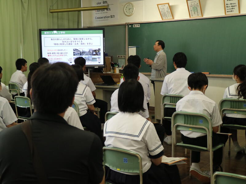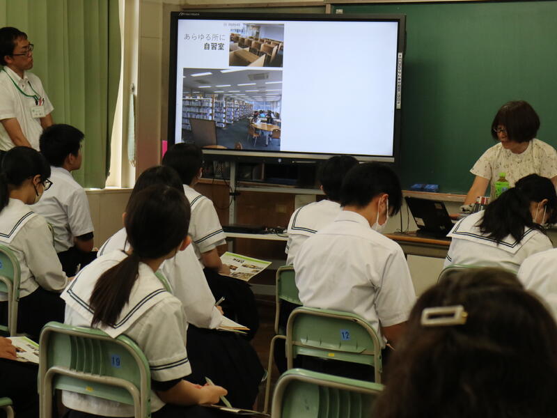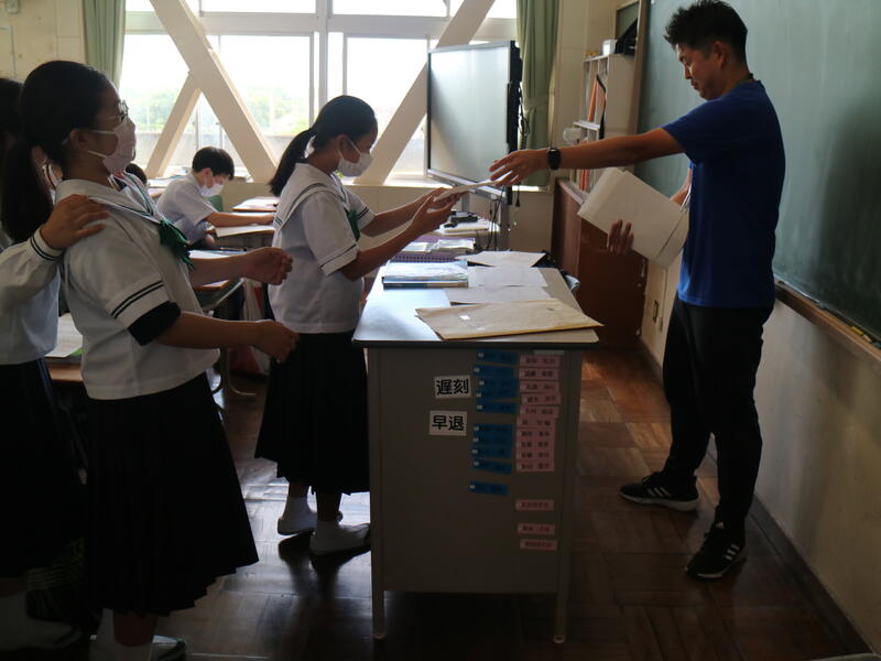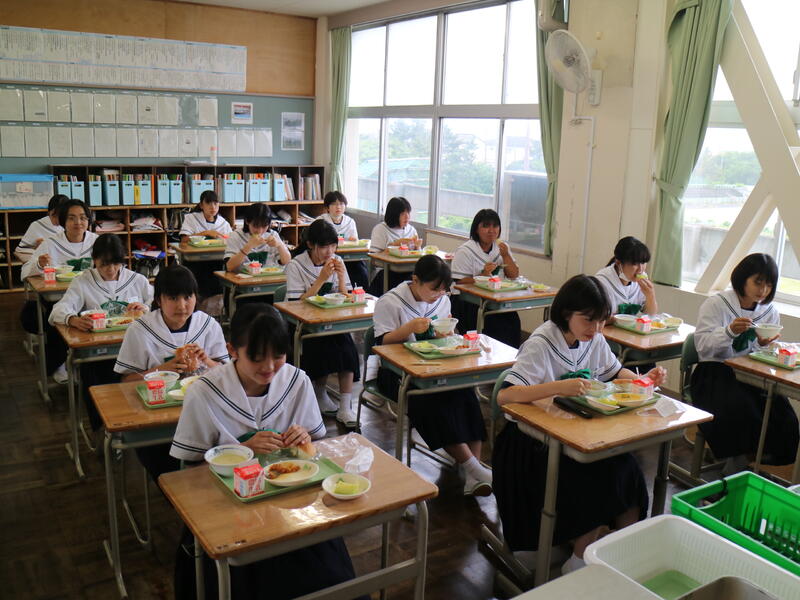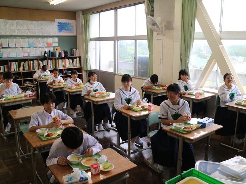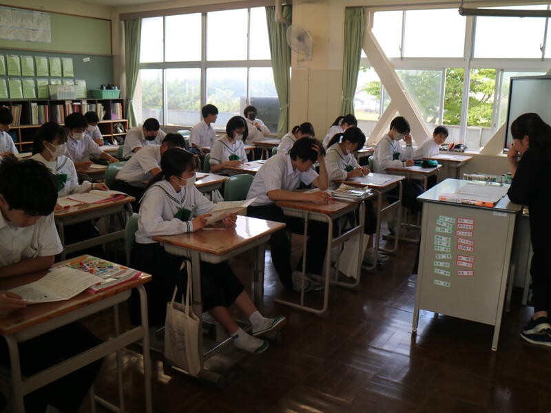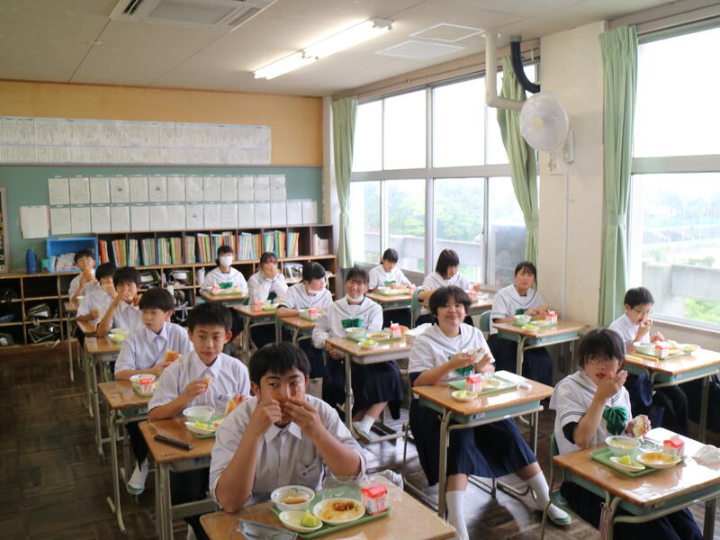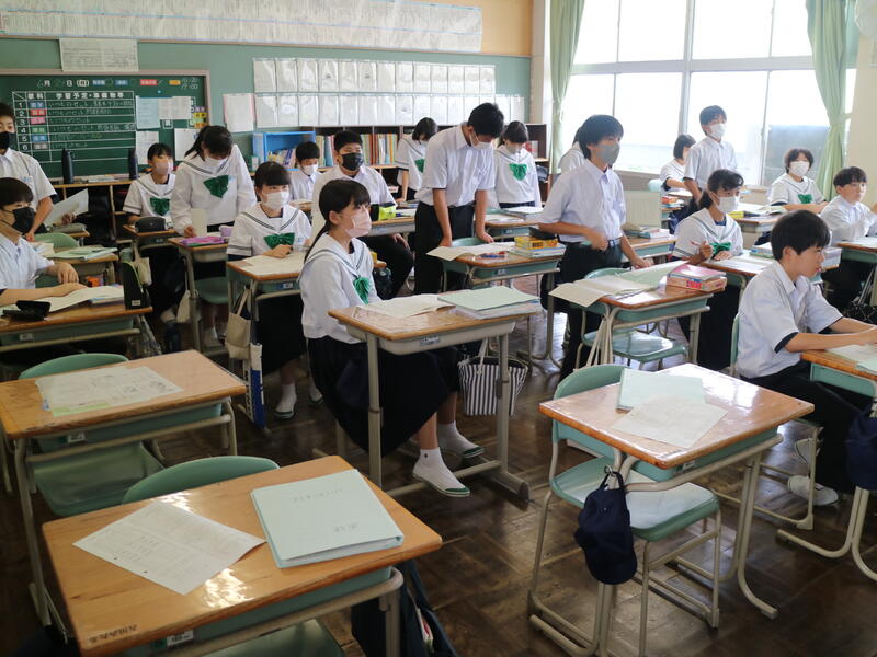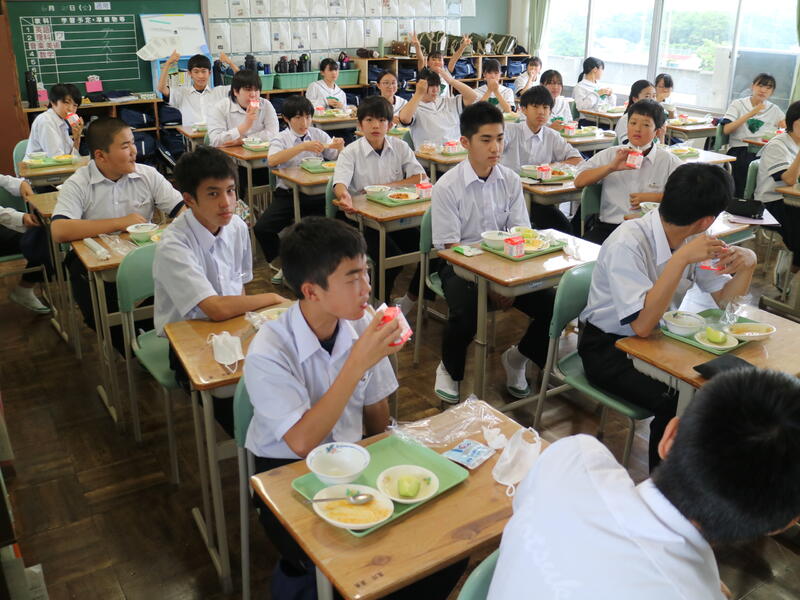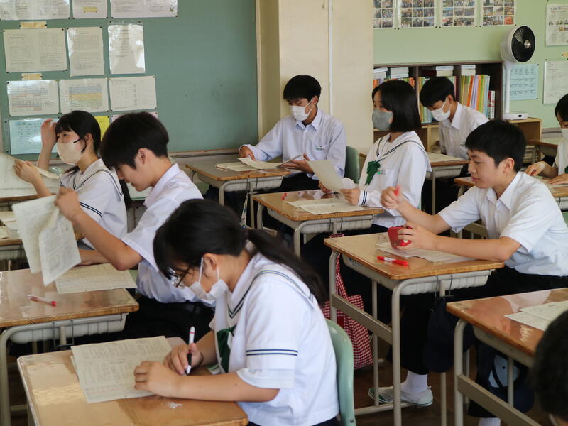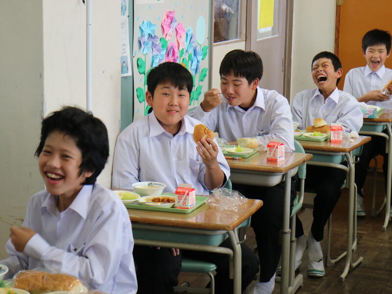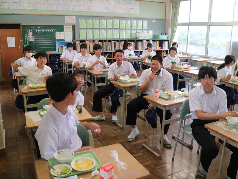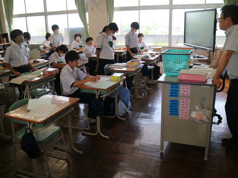 校内を回ると、笑顔の生徒たちが声をかけてくれる学校です。仲良しショットを1つ、ぜひホームページに、とリクエストがありました。外は雨模様ですが、本校生徒の表情はいつも晴れやかです。