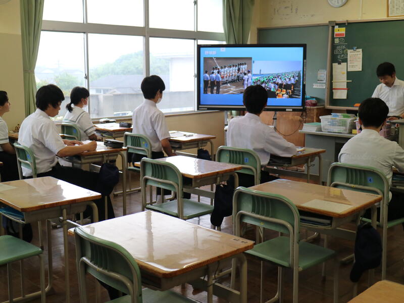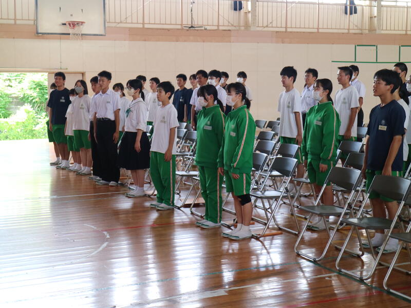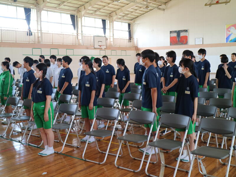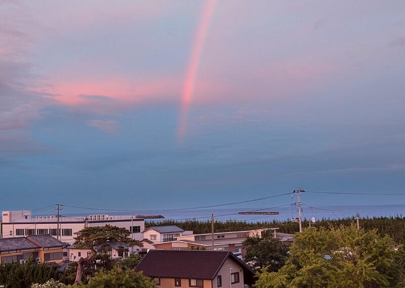 昨日、帰りに駐車場に着いて空を見上げると、空には大きな虹が。本校は4階から海の見える絶景の学校です。4階まで行って海にかかる虹の写真を撮ろうか少し迷い…職員室に忘れ物をしたことにも気付き、4階へ。