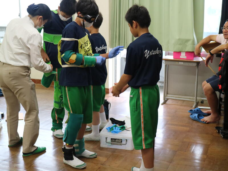 さて、本番は着用してから。その状態でいろいろなミッションにチャレンジします。くれぐれも気をつけて…行ってらっしゃい。パートナーの皆さん、ケガのないようにしっかり守ってあげてくださいね。
