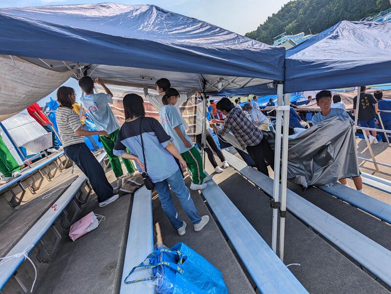 早めのお昼を食べ、午後に競技のあるメンバーは、昼休み(?)の自主練を頑張りました。