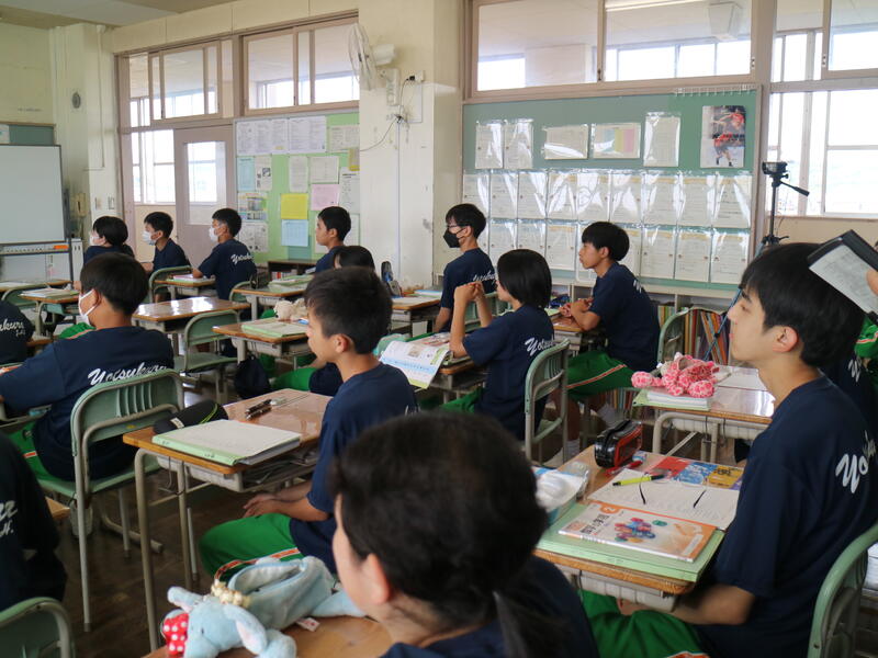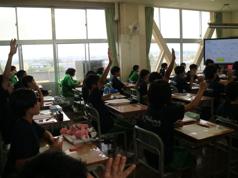 制限時間を2分間としましたが、最初に答えに気付いた女子生徒は、何と問題を読み終わる頃には手を挙げていました。さて、この答えは…?どうしても答えが分からない生徒は1年3組の生徒に聞いてみて下さい。