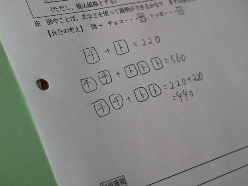 解き方1を理解した後は、それぞれに自力で解き方2に挑戦。