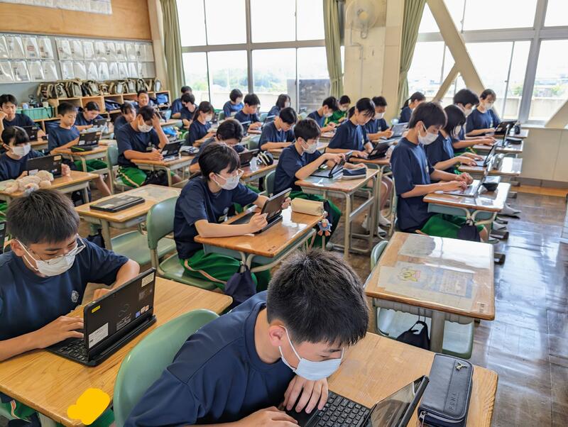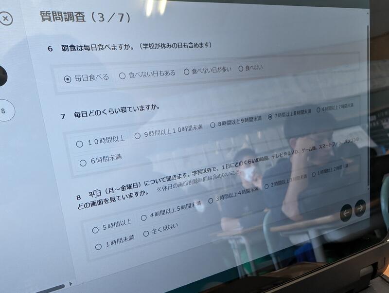 2年生を対象とした表題の調査も、今年度からはwebでの回答となりました。5月に行ったスポーツテストの結果表をそばに置いて、タブレットPCで入力しています。大きな混乱もなく、無事終了しました。「運動しなきゃと思いました」といった声も上がっていました。