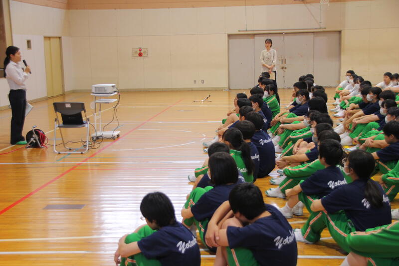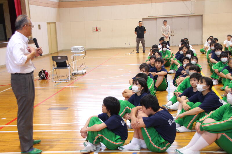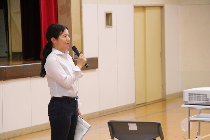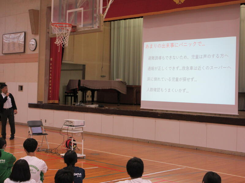 大阪教育大附属小学校に行って話を聞いたことのある教頭先生からは、実際に不審者が侵入したらどんなパニックが起こるものなのかをもとに、普段から放送をしっかり聞くことや、人数確認の大切さについてお話がありました。