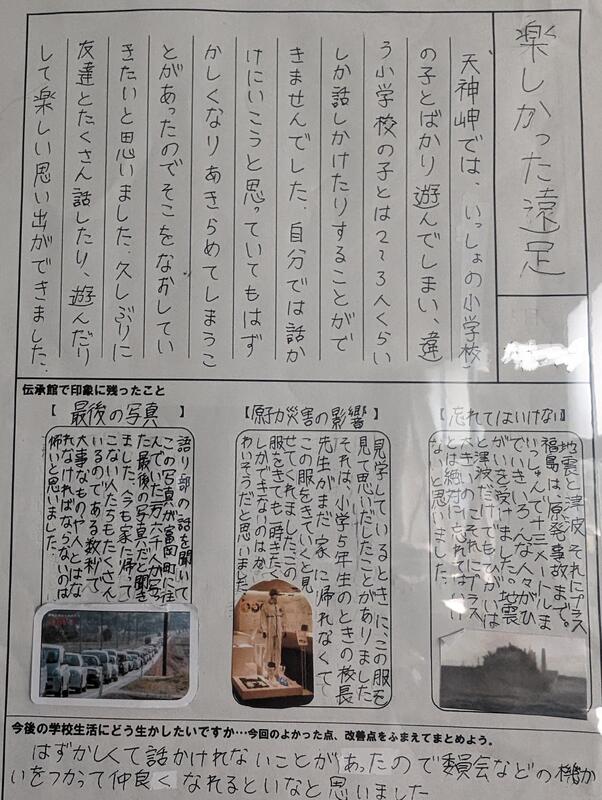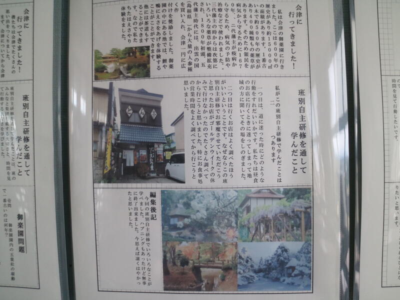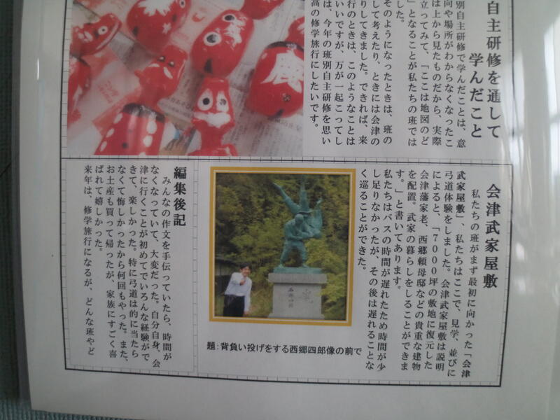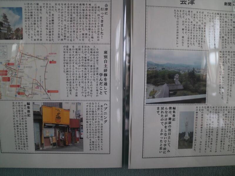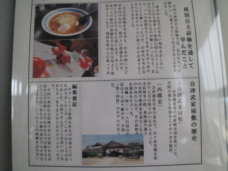 思えば、2年生は出発前に研修先の会津について調べ学習を行い、事前にまとめの壁新聞も作成していました。事前の学習も十分に生きた遠足となったようです。