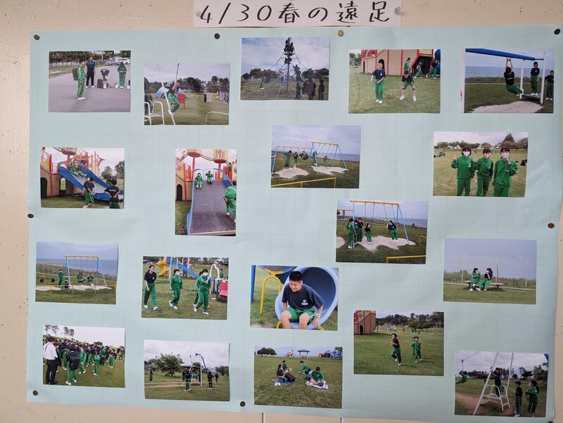廊下に行くと、遠足の思い出写真館がオープンしています。たくさんの思い出ができましたね。