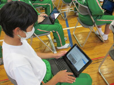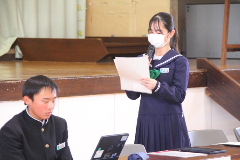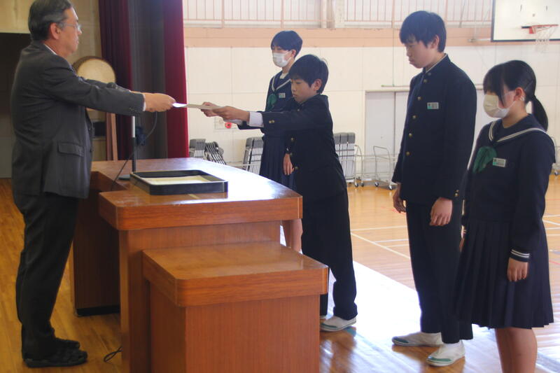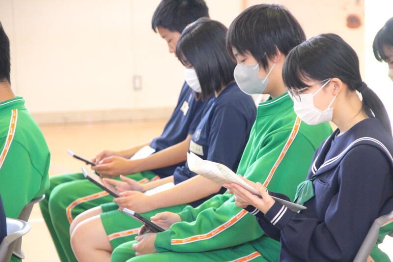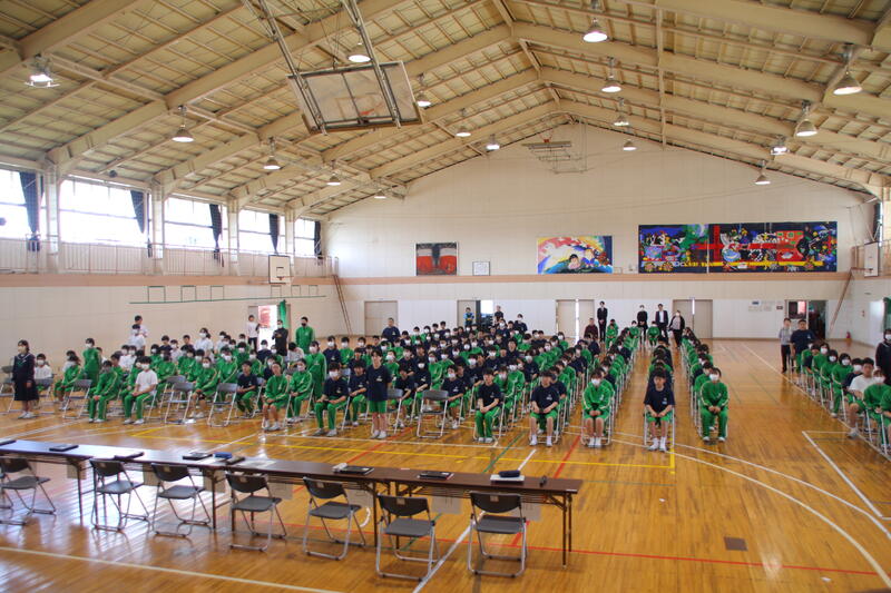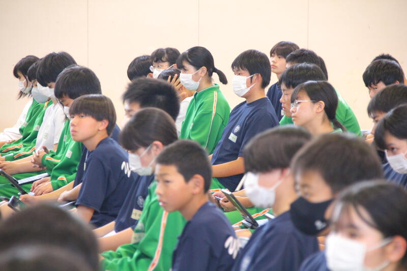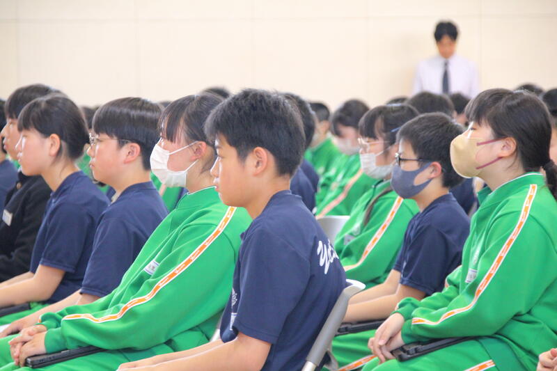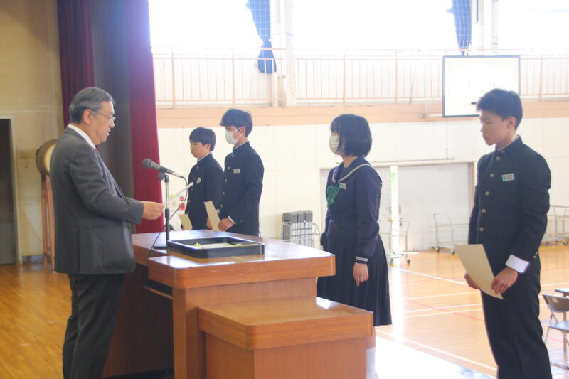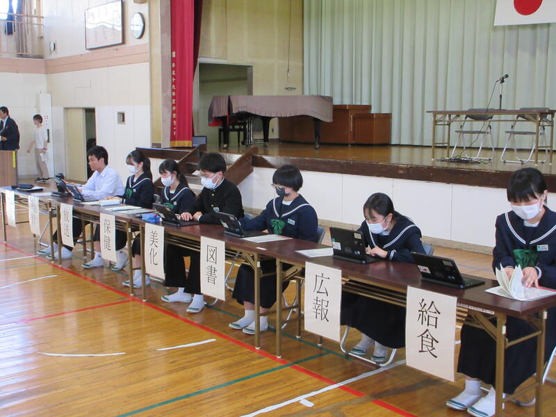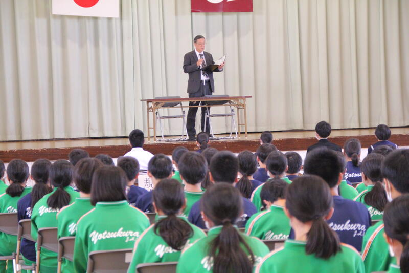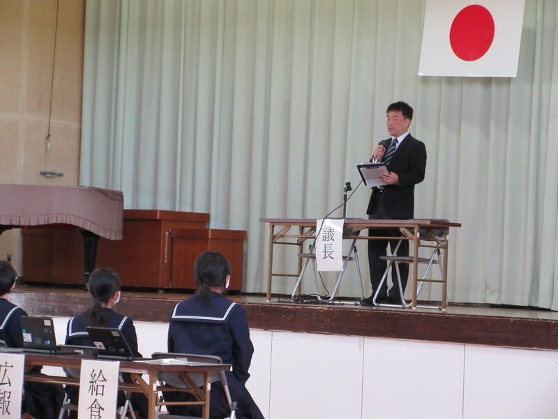 総会が始まり、まずは校長先生からのお話。現状に満足せずチャレンジすることの大切さ、四倉中をよりよくするために自分の立場でできることを考えてほしいというお話がありました。
