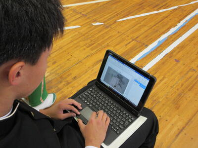 カメラを持って各会場を歩いていると、「教頭先生、これってホームページ載りますか?」と現れる生徒達。満面の笑みでピース(^_^)v