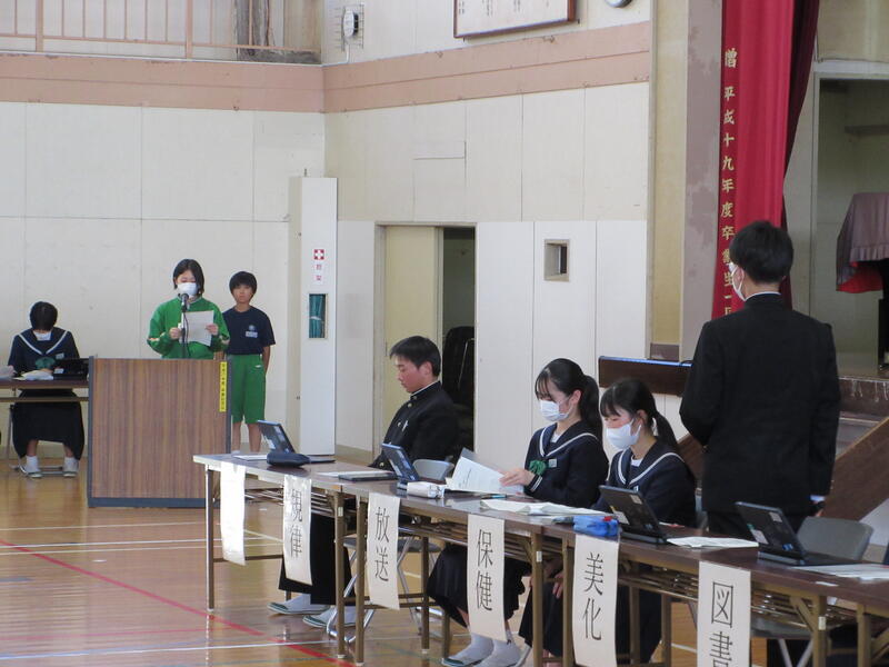最後に教頭先生からお話がありました。計画をしっかり作ること、それを改善していくこと、自分の仕事に関心を持つこと、人任せにしないこと、に加えて「笑顔のあいさつ」の話がありました。全校生のあいさつを一段階レベルアップさせる取組に期待しています。