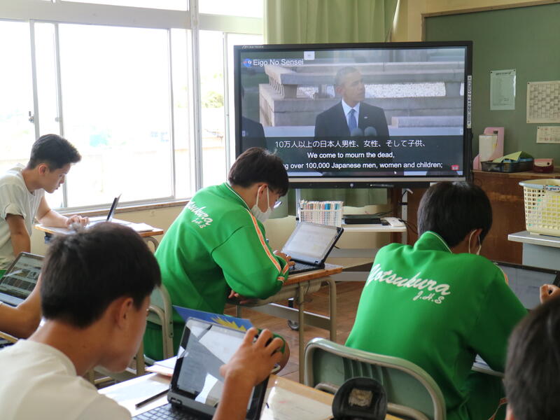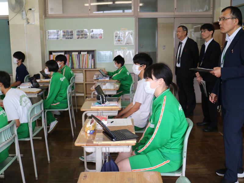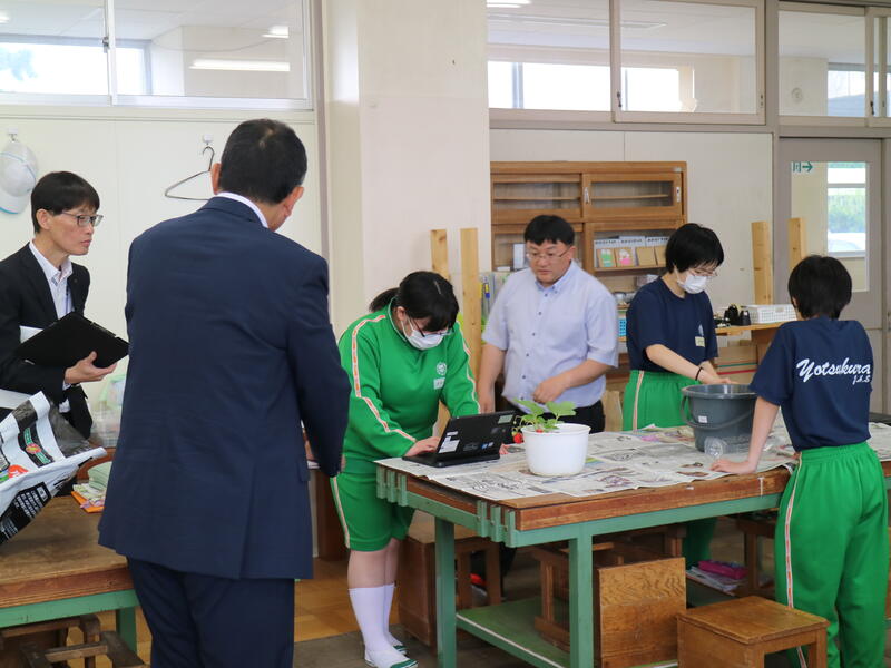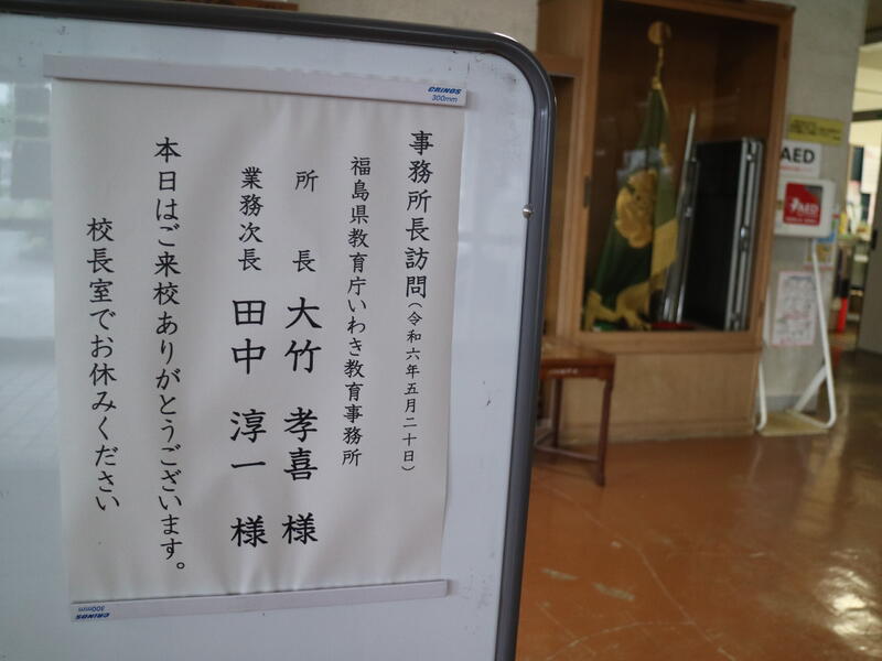 本日は、いわき教育事務所より事務所長と業務次長をお迎えして学校の様子を見ていただきました。