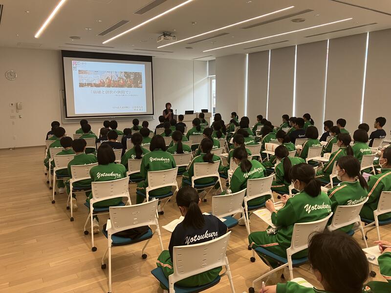 1学年は、館内見学ののち、語り部講話を聞いています。貴重な資料、お話ばかりで、生徒は皆真剣に聞いています。