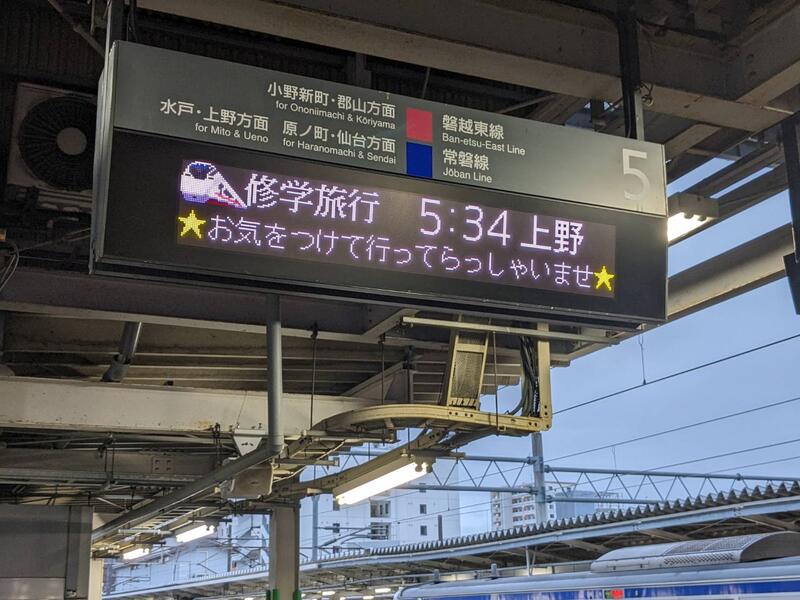 5時34分の特急臨時列車に全員乗車し、上野駅に向けて出発しました。
