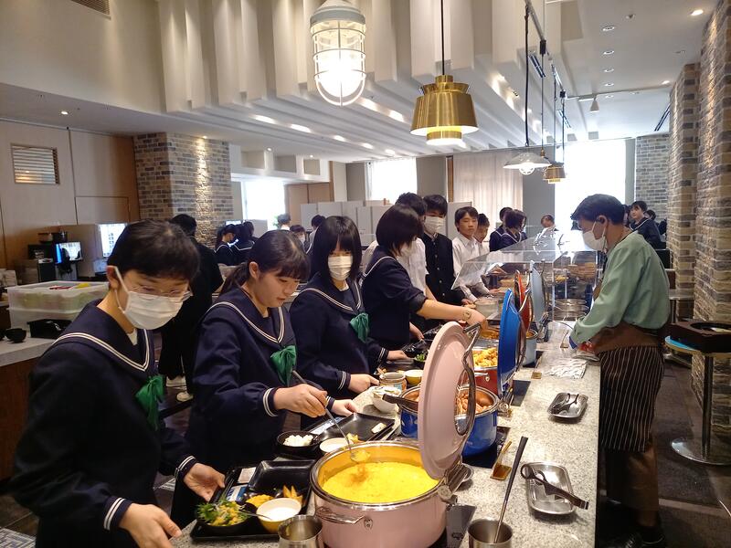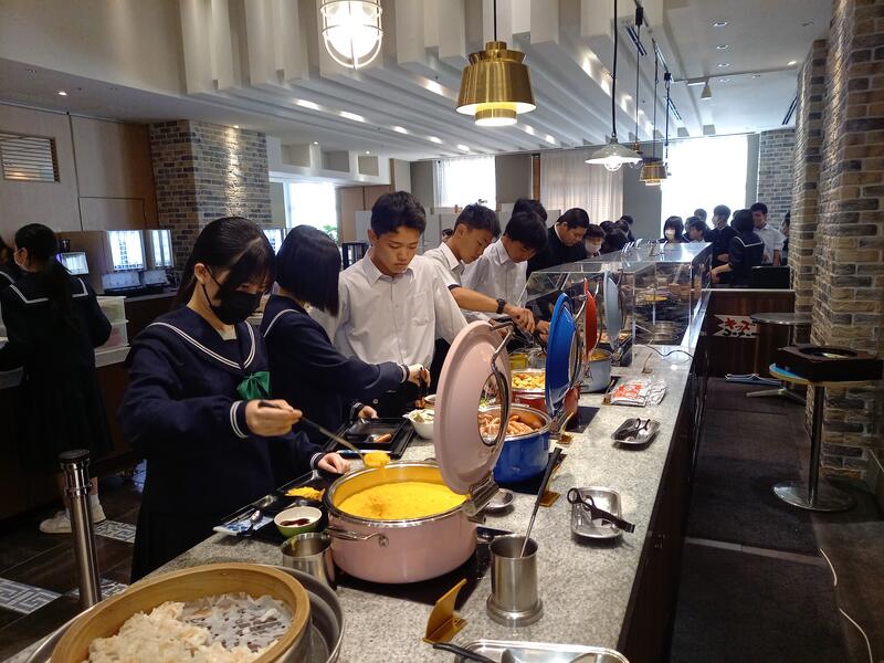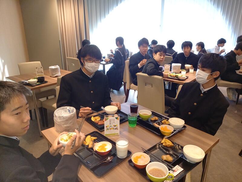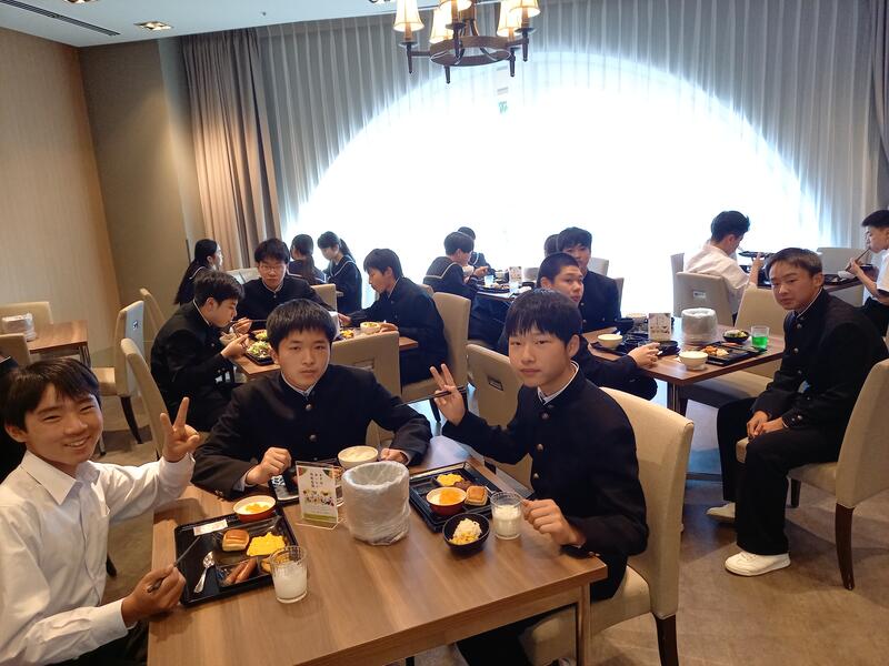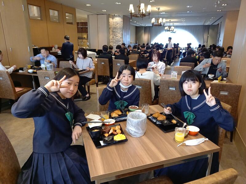 2024年4月25日 06時55分おはようございます。2日目の朝になりました。朝食は、バイキングです。多少眠そうですが、朝食をとっていました。