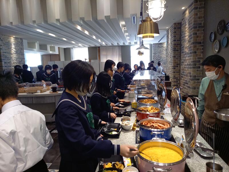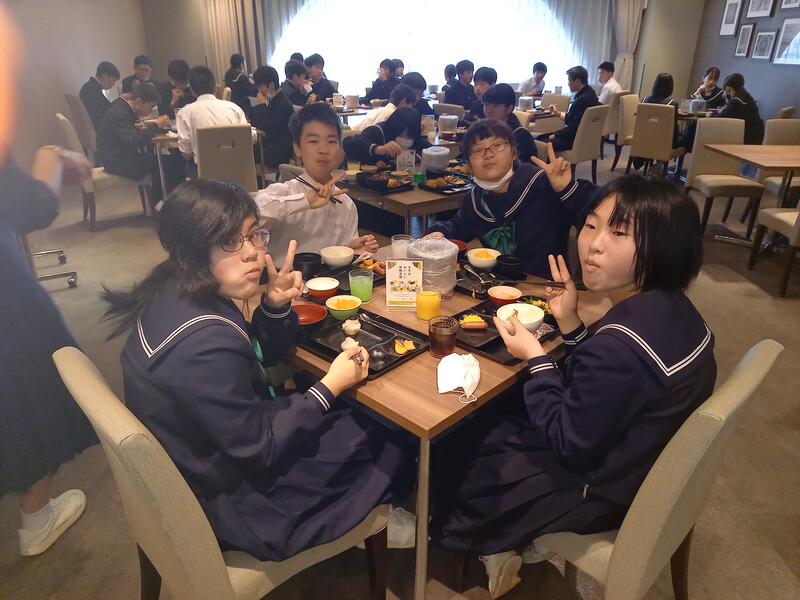 おはようございます。2日目の朝になりました。朝食は、バイキングです。多少眠そうですが、朝食をとっていました。