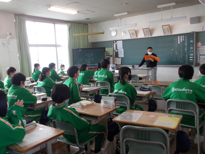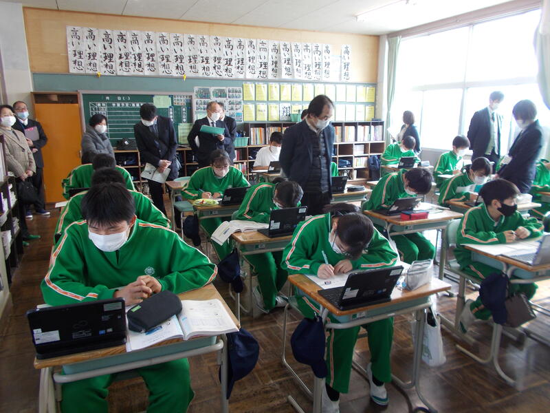 昨日5校時、小中連携授業研究会が実施されました。四倉小、大浦小の先生方が来校し、1年2組の数学の授業を見ていただきました。