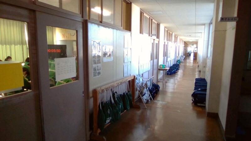 廊下に整然と並ぶかばんもテストの風物詩ですね。