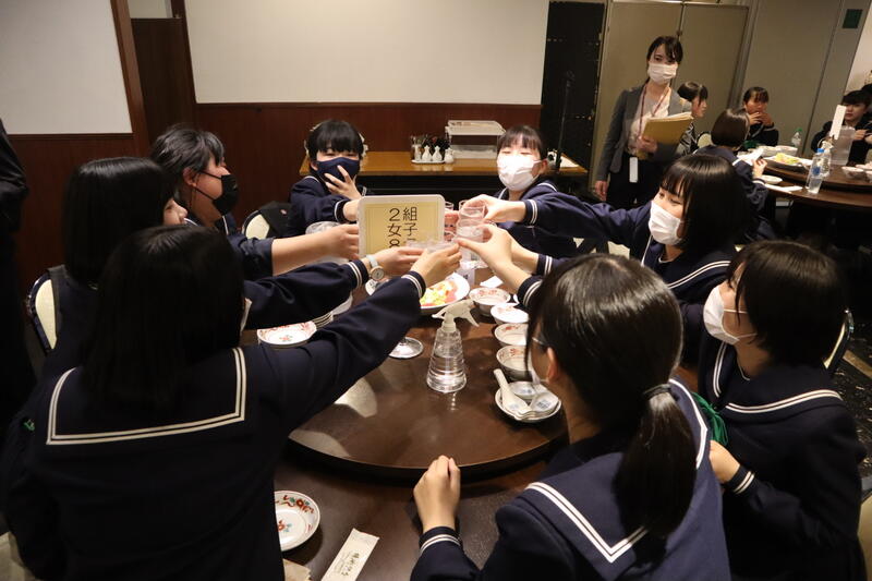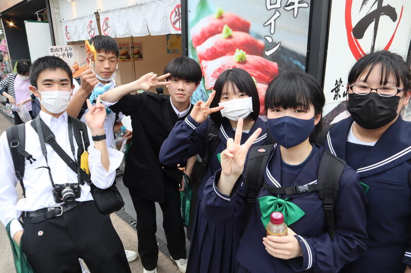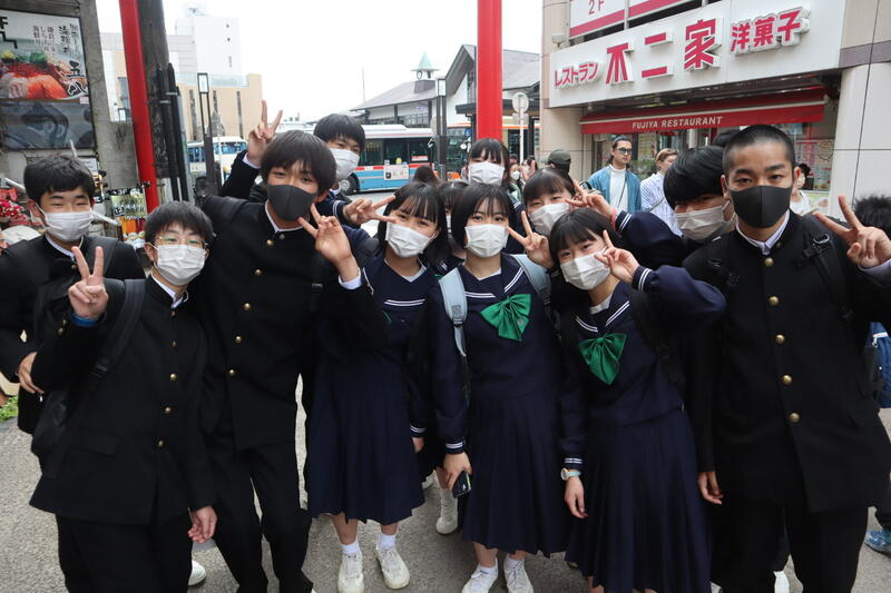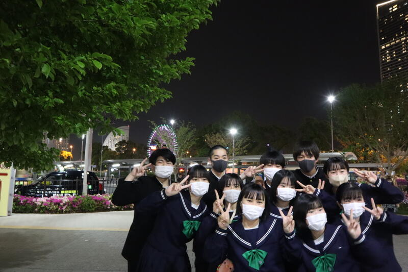 都内班別自主研修を終え、東京スカイツリーに集合して写真撮影。