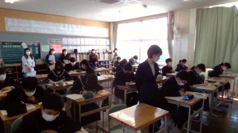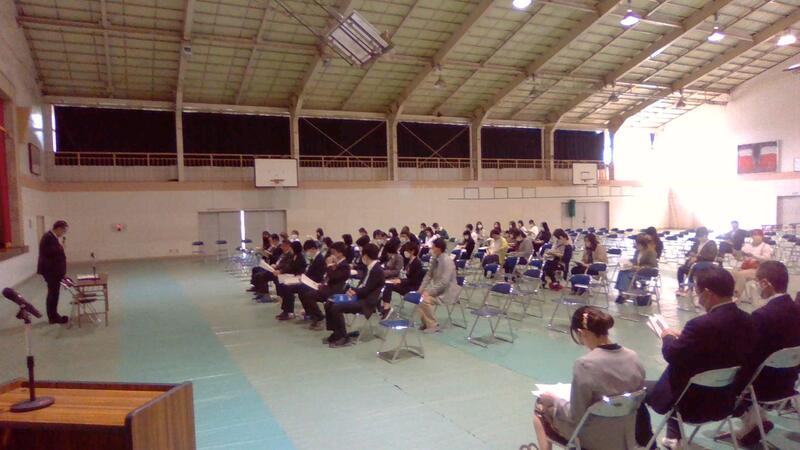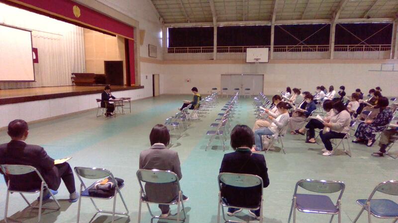 1,2年生は学級懇談、3年生は体育館で学年懇談会でした。
